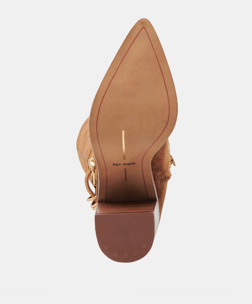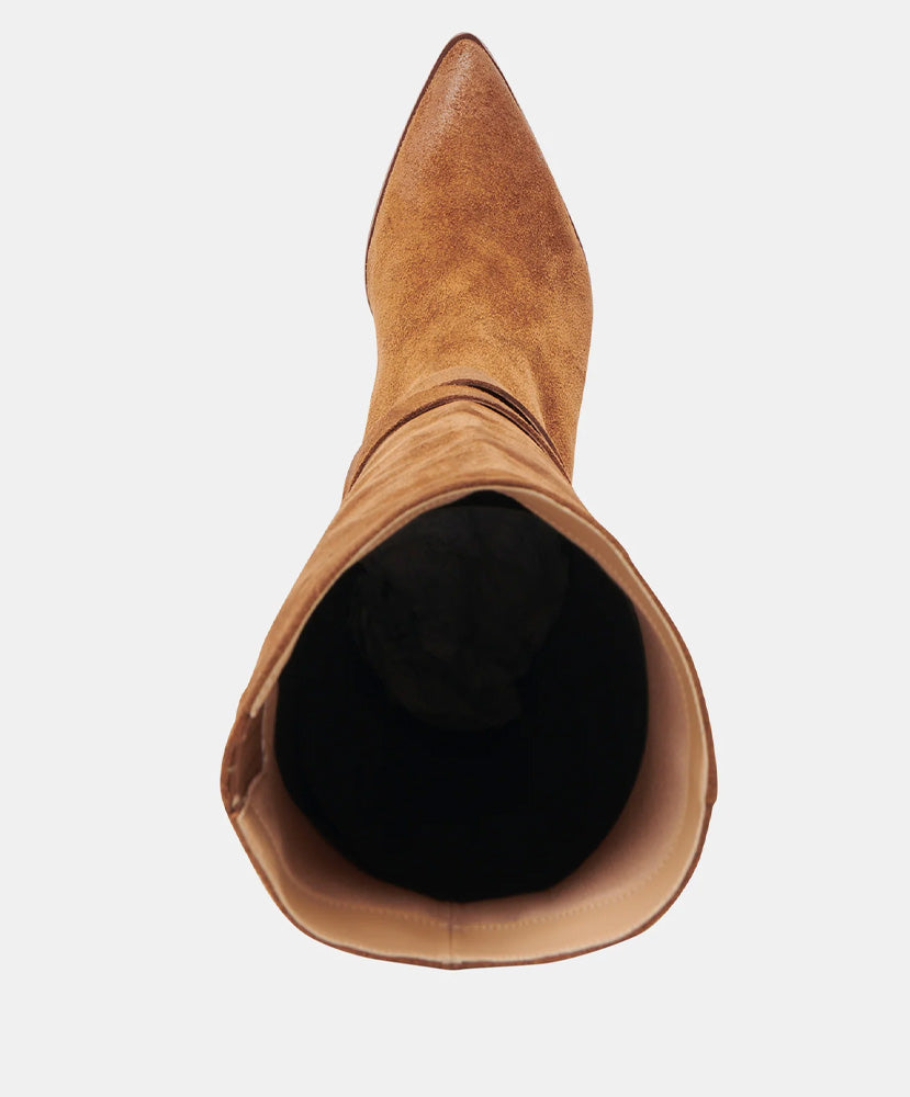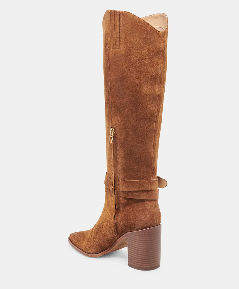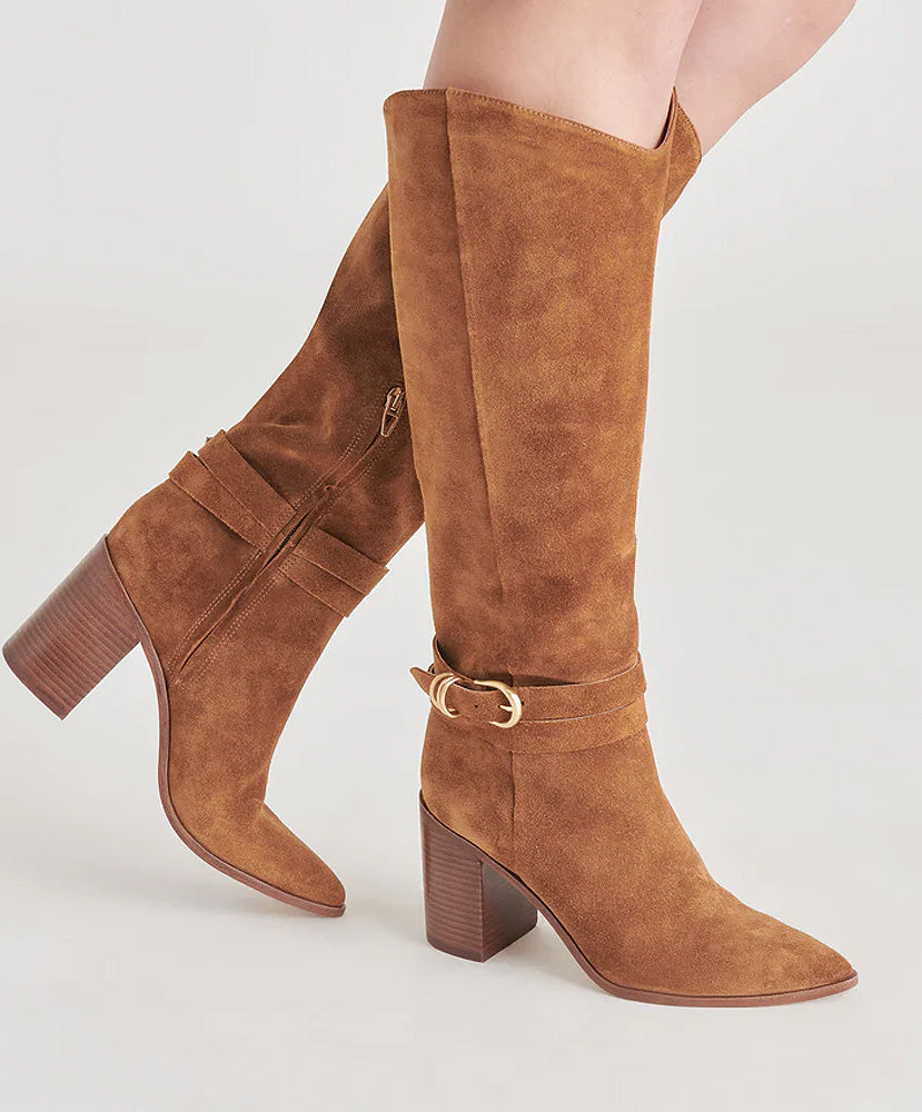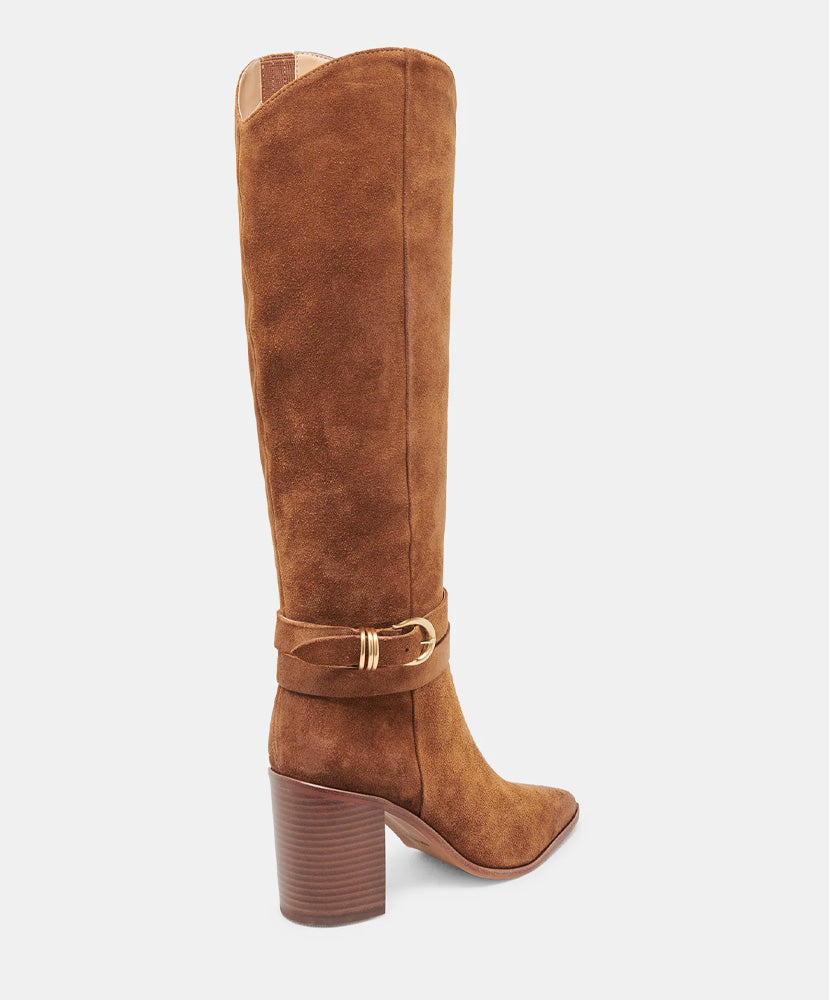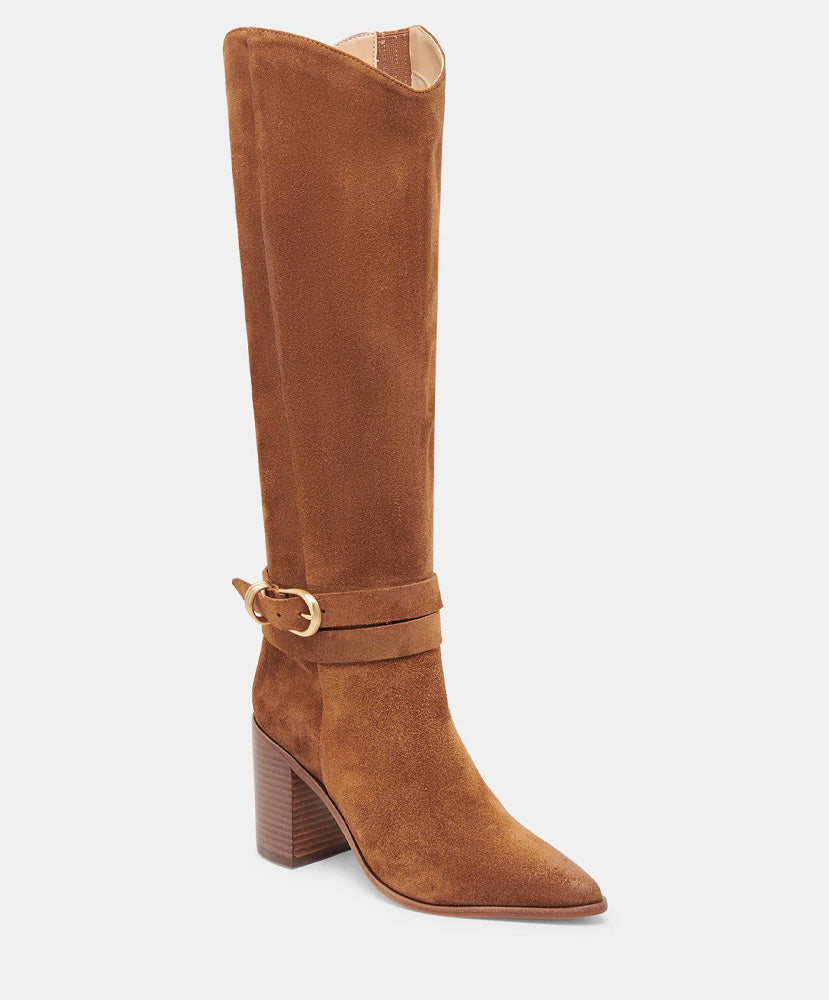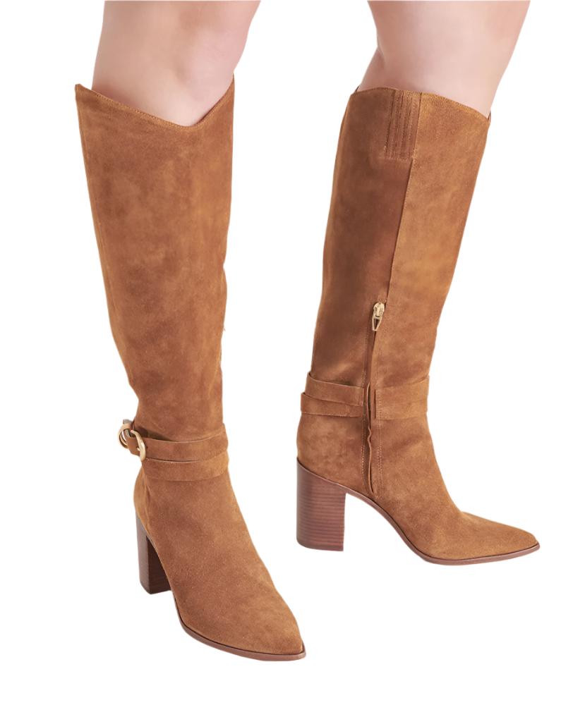 TYRONE is understated and timeless. This knee-high boot’s block heel pointed toe, and an ankle strap gives just enough detail to stand out. Pair this style over jeans or with slitted sweater dresses.