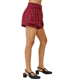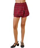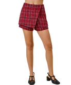 Sophisticated with a playful twist, the Ellison Tweed Shorts are designed with a chic wrap-over front panel that gives them the look of a mini skirt with the comfort of shorts. The rich burgundy tweed fabric adds texture and depth, while the tailored fit keeps them polished for any occasion. Pair them with the matching tweed vest top for a set that’s equal parts power dressing and effortlessly chic.