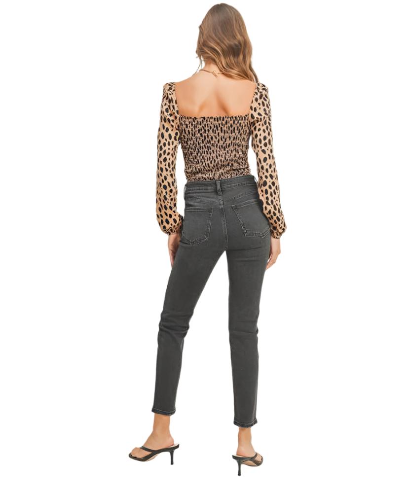 High rise vintage clean ankle skinny jeans with classic hem in washed black denim.