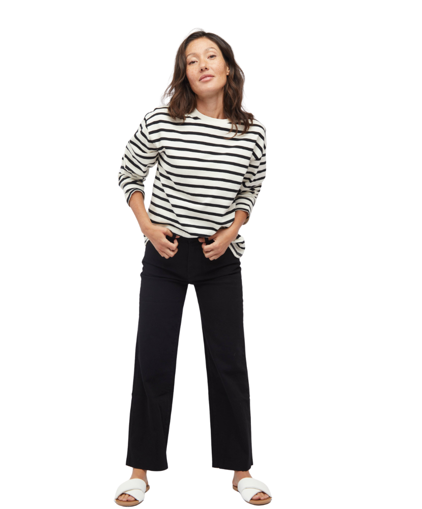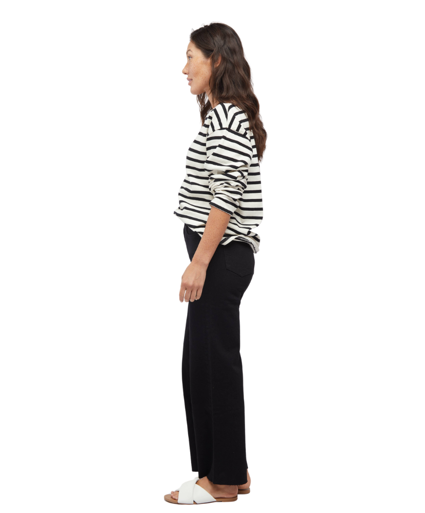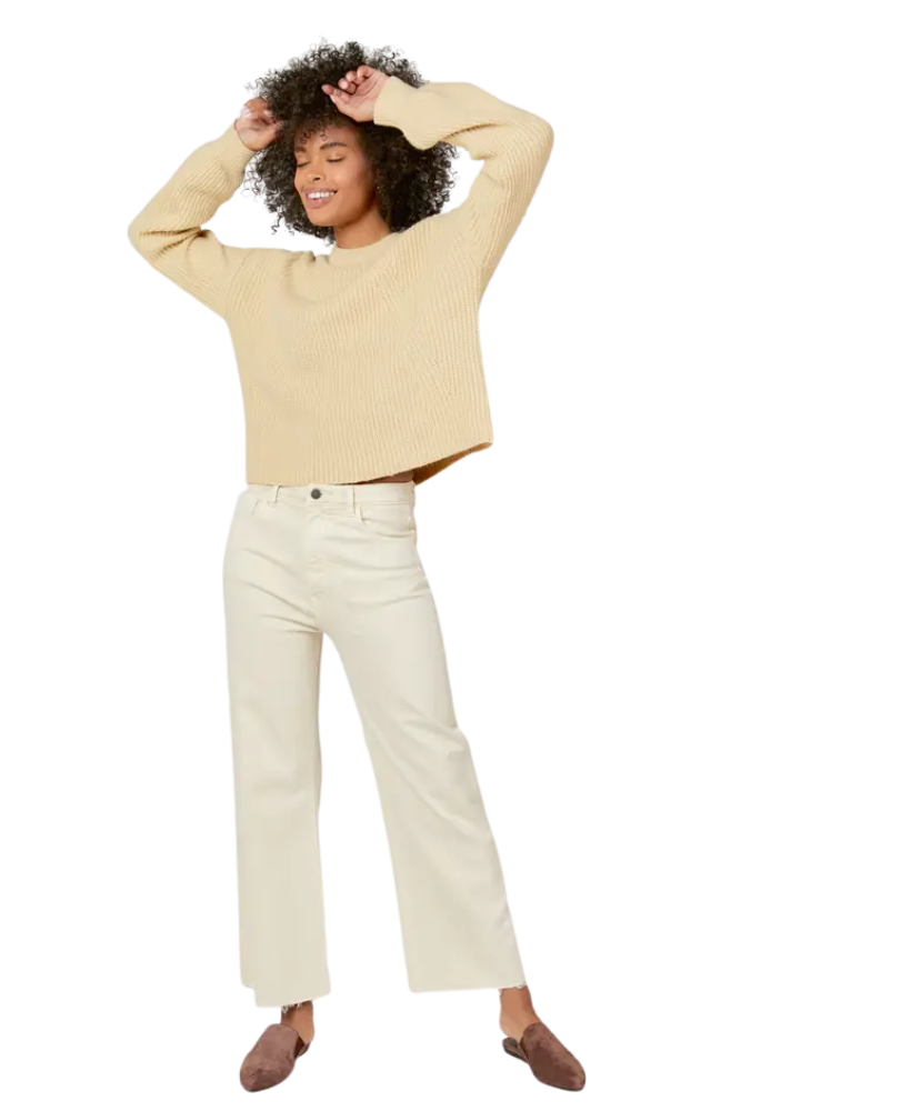 Flattering from every angle, these jeans were made to show off your shape and your style. With a high-rise waist, fitted hip, and relaxed wide leg, they strike the perfect balance of structured and easygoing. The cropped raw hem adds just the right amount of edge, and the sustainable denim keeps things soft yet sturdy.