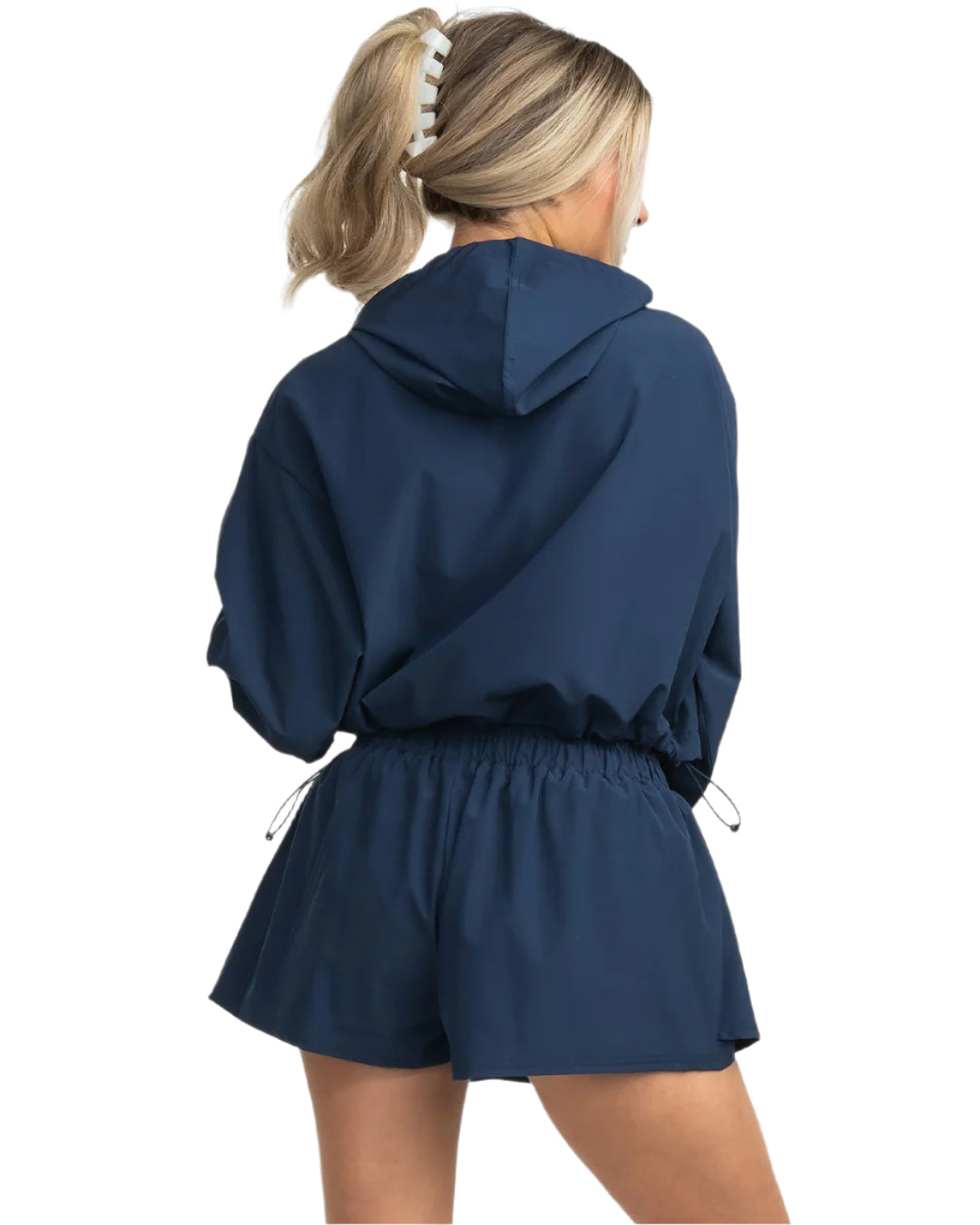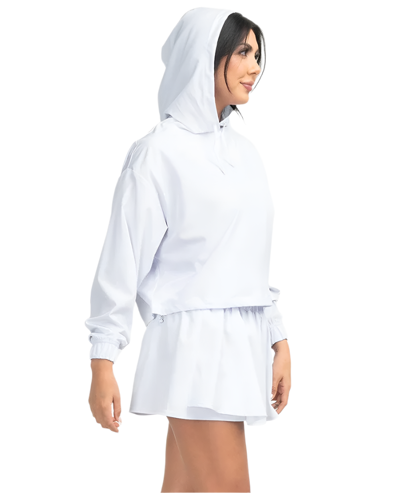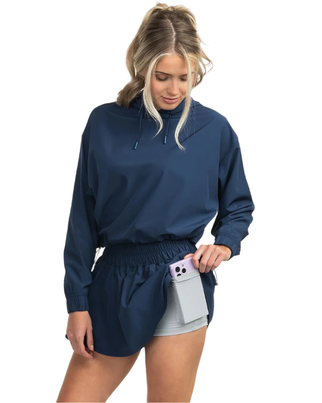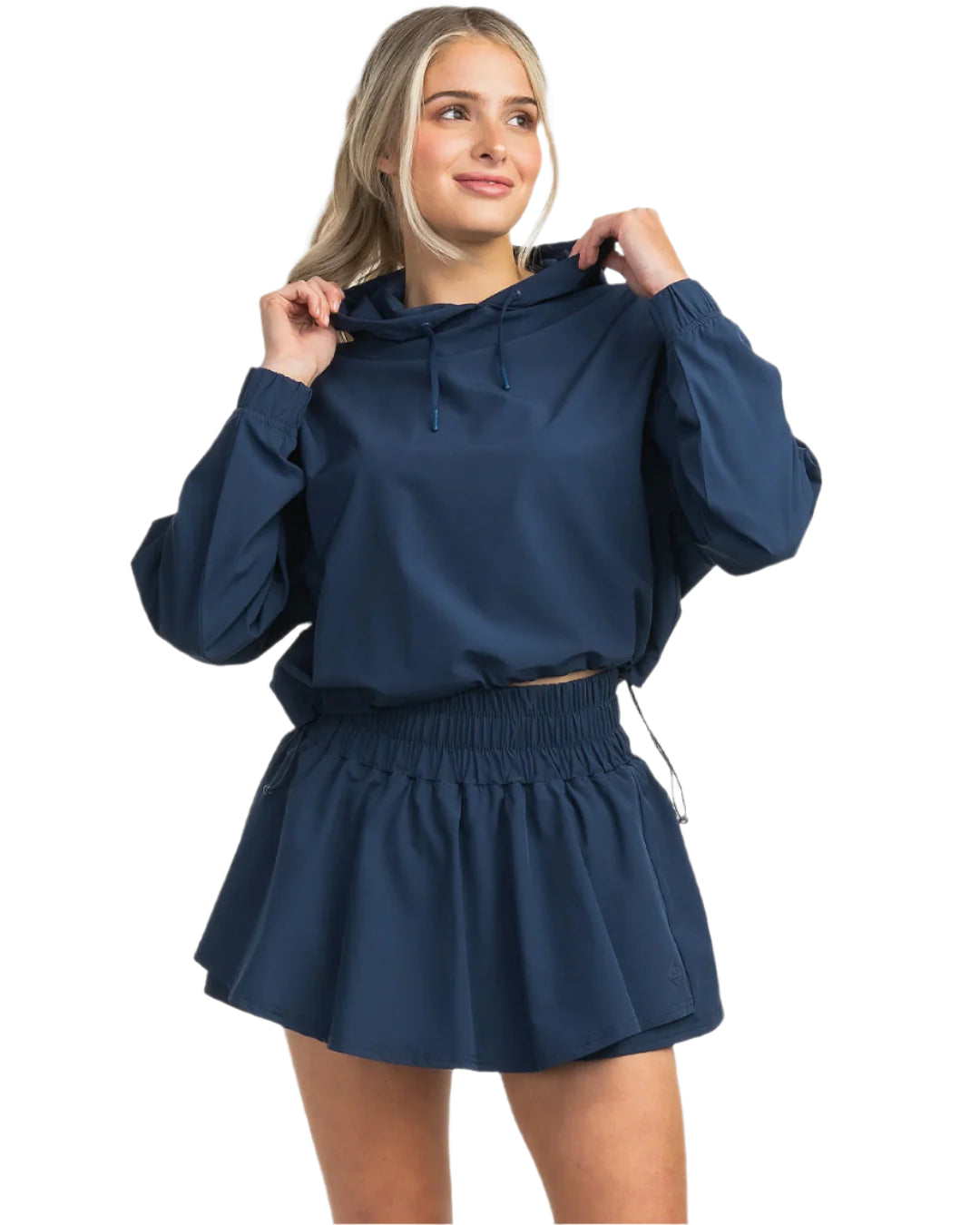 For whatever is on your agenda, this hoodie has your back. And front. And everywhere in between. It is cropped just enough for the gym or at the park, or really anywhere your day takes you. It pairs well with the Hybrid Performance Skort.