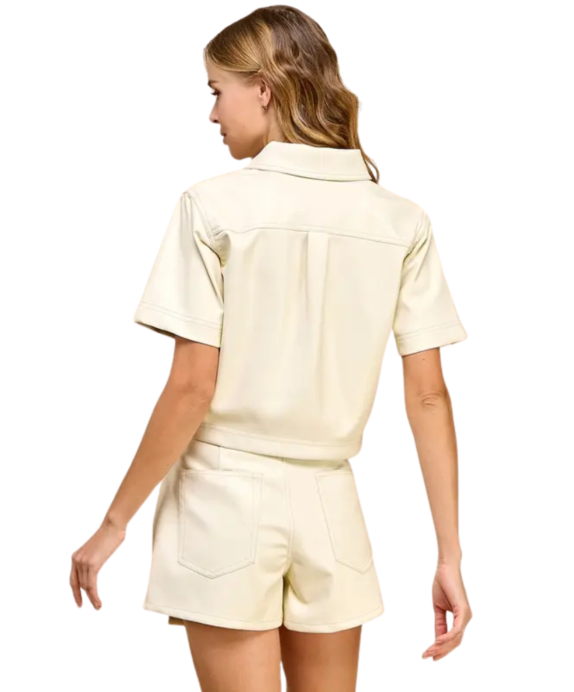 Who says you can’t have the best of both worlds? The Allie Asymmetrical Skort serves up the sleek look of a mini skirt with the comfort (and coverage) of shorts. Designed in luxe faux leather with an angled front panel, it’s a total statement piece — especially when paired with the Allie Cropped Top.