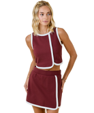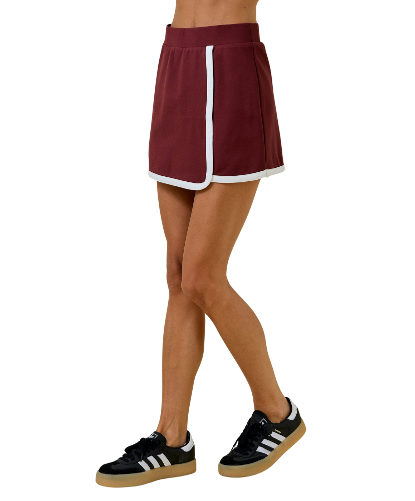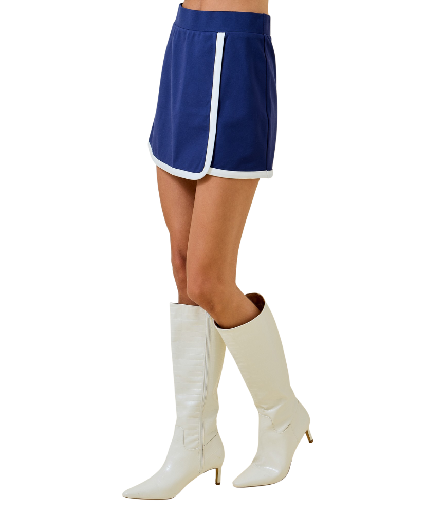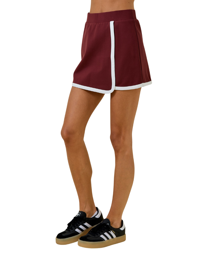 Sporty meets chic with the Shelby Contrast Skort. Featuring a mini wrap-style design trimmed with contrast binding, it’s equal parts playful and polished. Built-in shorts give you the confidence to move, making it perfect for game days, events, or just owning the sidewalk.