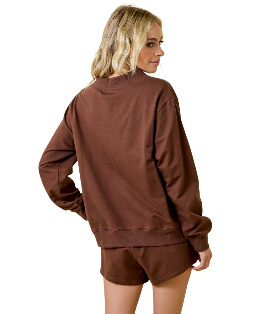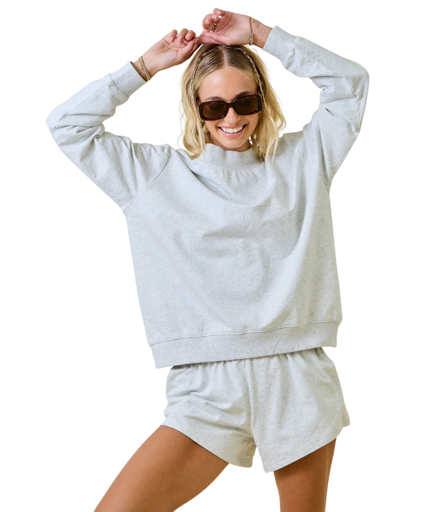 Meet your new go-to: the Molly Mock Neck Terry Sweatshirt. With its oversized neckline and relaxed fit, it’s made for coffee runs, late-night drives, or just lounging in effortless style. Pair it with the matching shorts for the cutest off-duty set or mix it with denim for a casual-chic vibe.