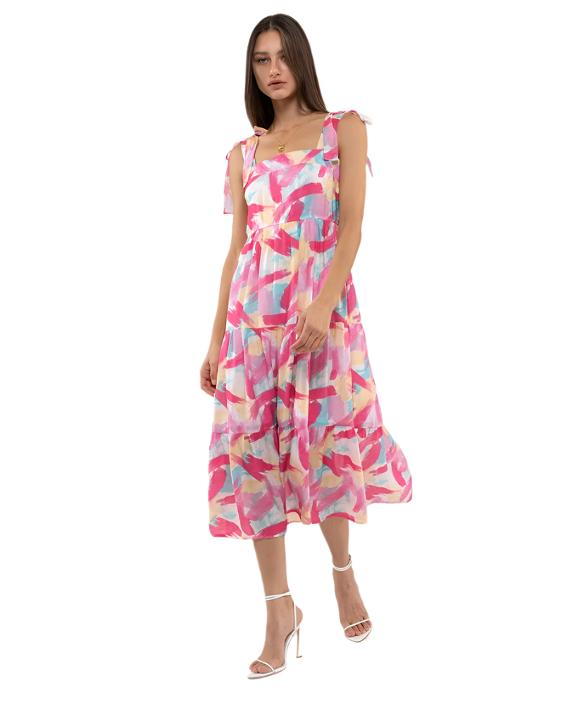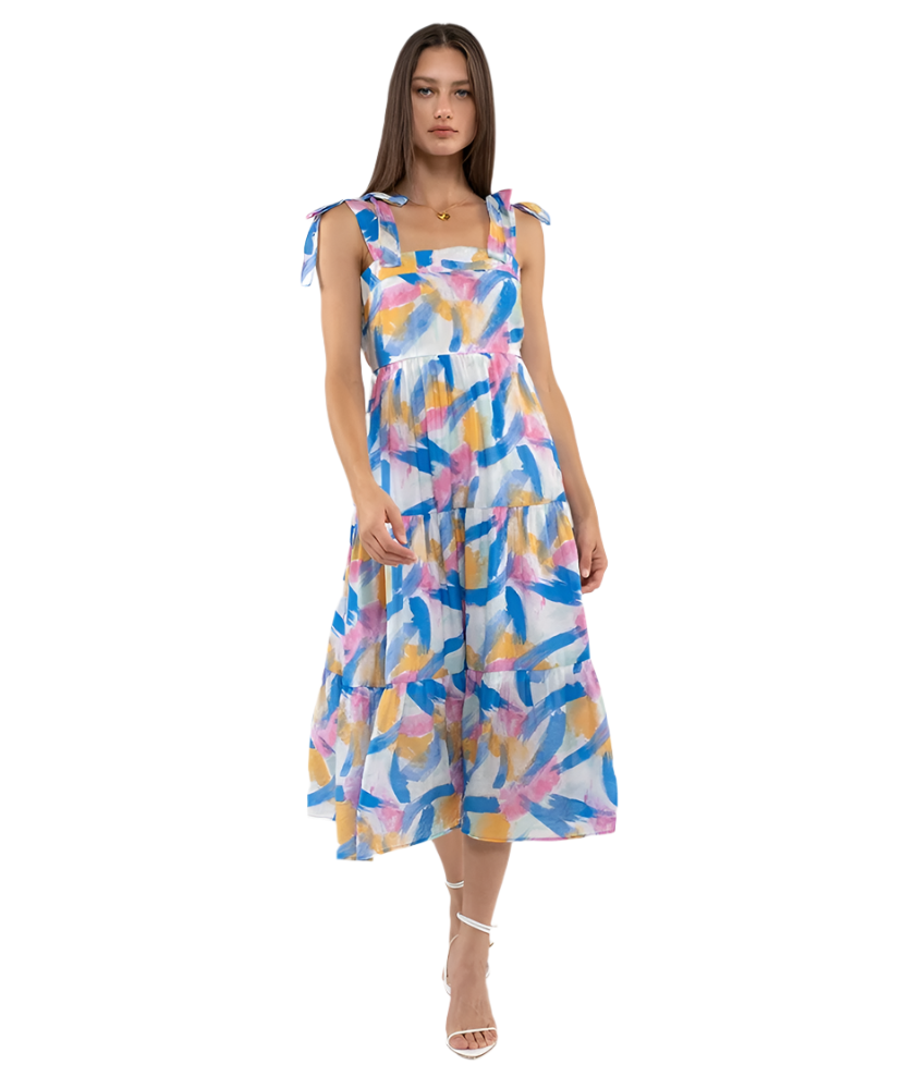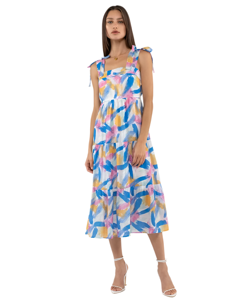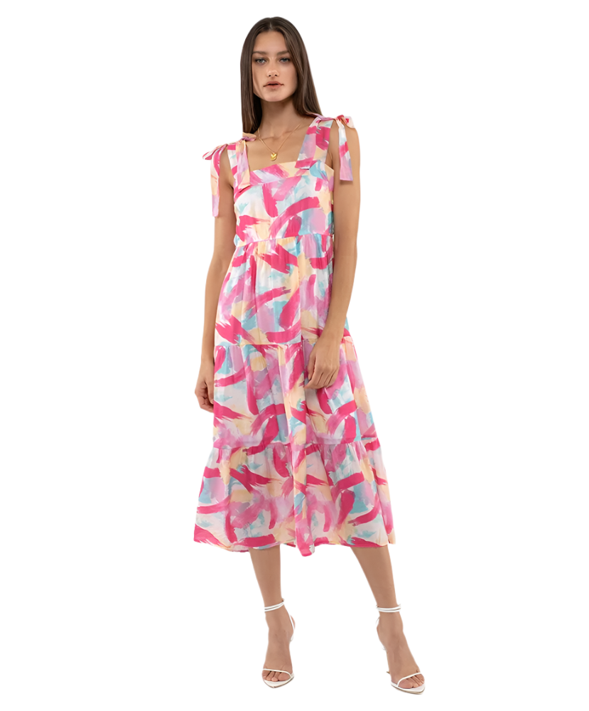 If this isn't the prettiest dress for spring, then we don't know what is!! This is a beautiful watercolor-printed flowy dress with a tiered style. It fits true to size, with a square neckline and wide enough straps to make it bra-friendly. This dress is lined and has a flowy style that pairs well with sandals or heels!