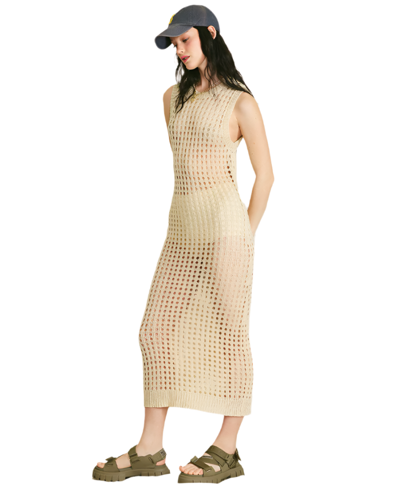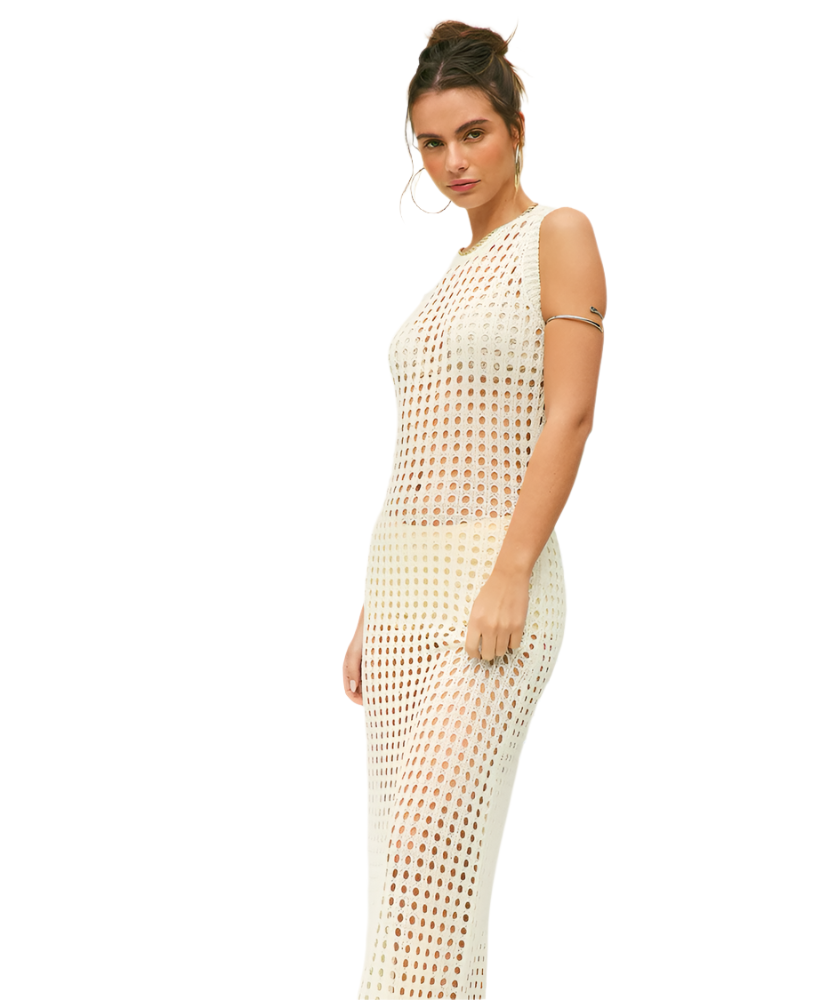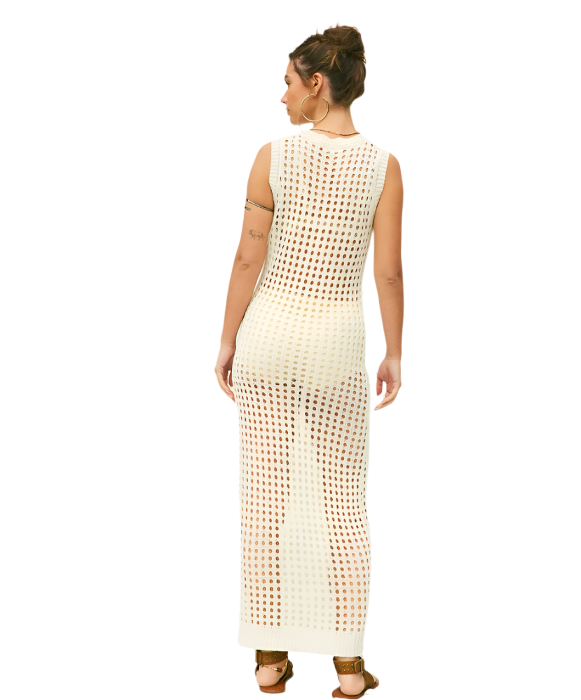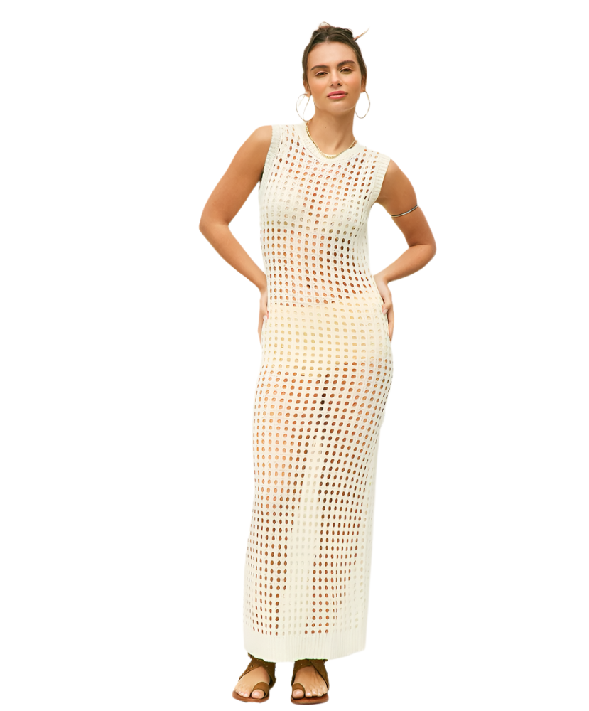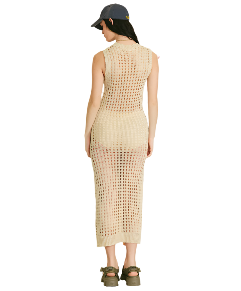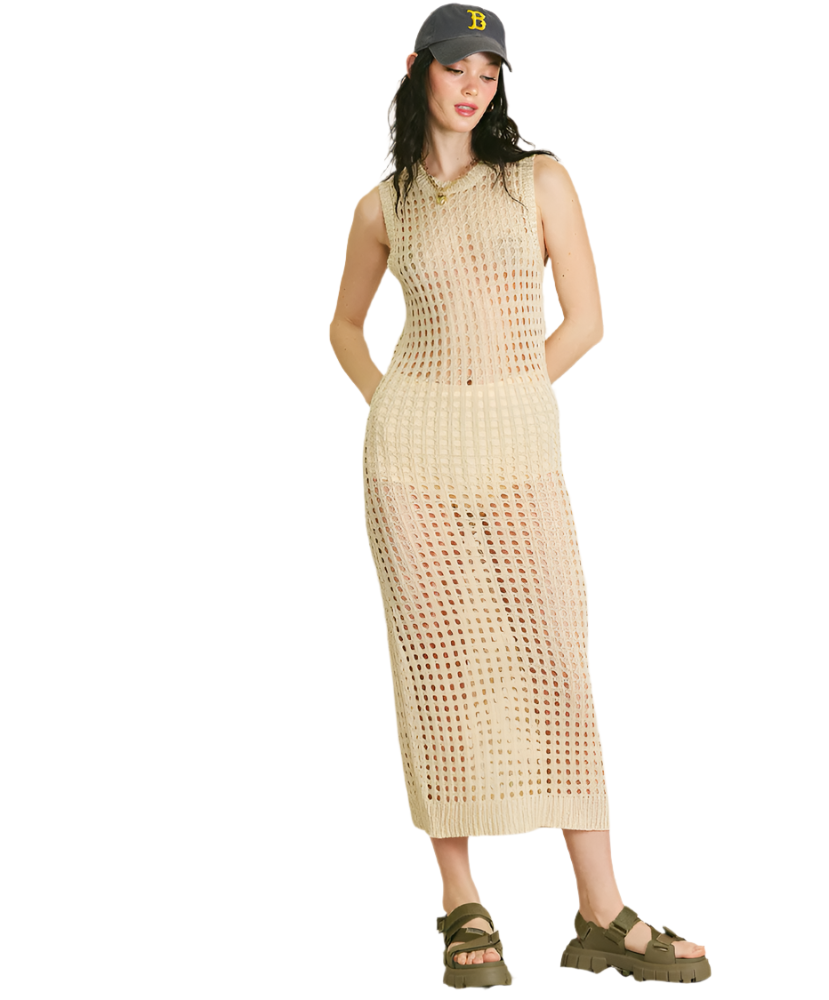 Breezy, bold, and beach-ready—the Sheer Crochet Dress is the ultimate layer for sunny days and golden hour getaways. Made from a soft open-knit blend, this sleeveless stunner features a relaxed silhouette with a ribbed neckline and hem for a clean finish. Available in two dreamy hues—Off White and Natural—this unlined maxi gives you endless styling options, from poolside chic to sunset strolls.