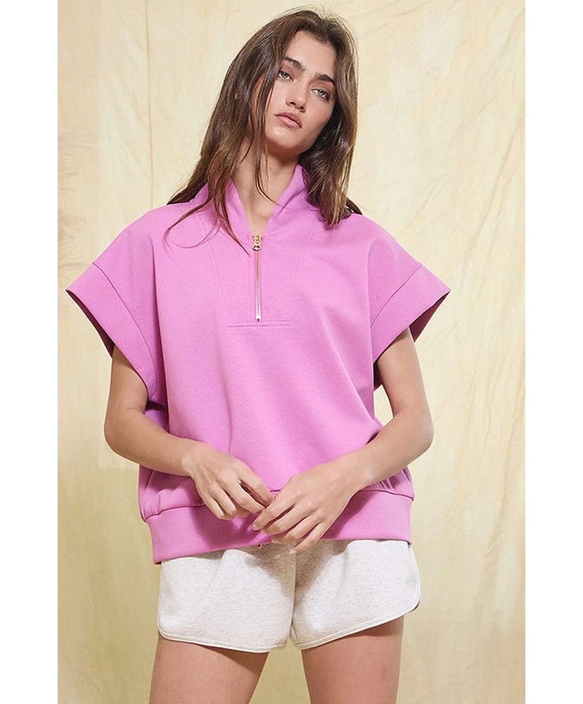 Tate Short Sleeve Half Zip - Up Scuba Sweatshirt SS