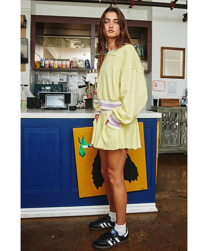 - Matching top: Anna Stripe Banded Crop Sweatshirt
