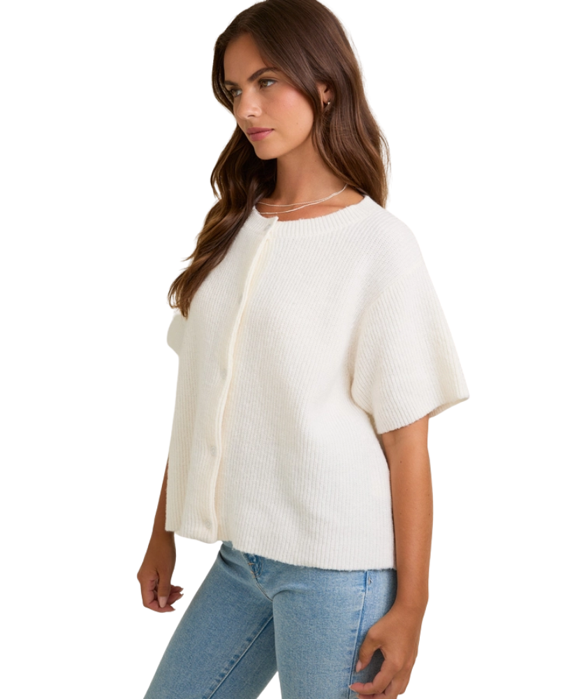 Roxy Round Neck Short Sleeve Sweater Cardigan