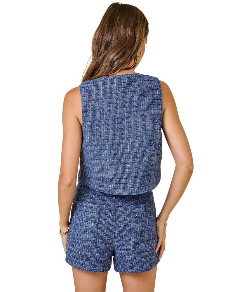 Gema Tweed Crop Vest Top W/ Silver Buttons