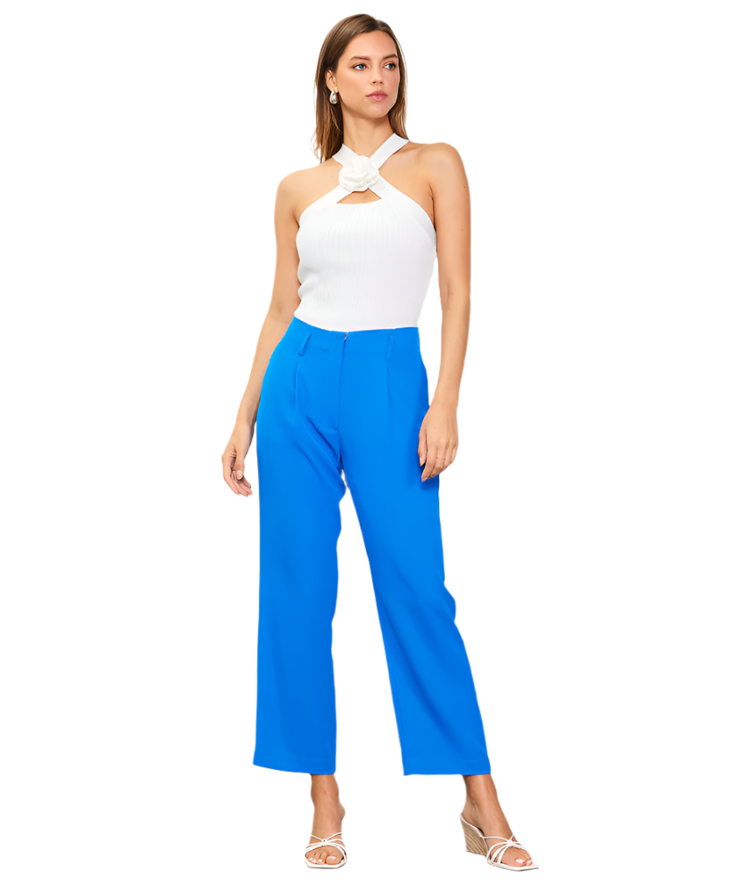 Made from a comfortable rib knit, this figure-hugging halter top has crisscross straps decorated with a rosette at the front. Dress it up, dress it down — either way, it's sure to get compliments.
