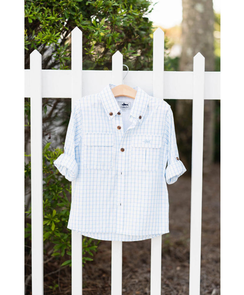 Whether he’s casting lines or climbing fences, the Flagler Fishing Shirt delivers all-day comfort, sun-smart features, and classic coastal style. Designed with performance in mind and finished with details that keep things polished, it’s a shirt made for little explorers.