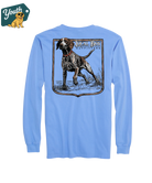 For the kid who’s always ready to hit the field (or just the backyard), this long sleeve tee brings comfort, style, and plenty of dog-loving spirit. Featuring a bold German Shorthaired Pointer design on the back and the classic Local Boy pocket logo on the front, it’s the perfect blend of outdoor grit and everyday wearability.
