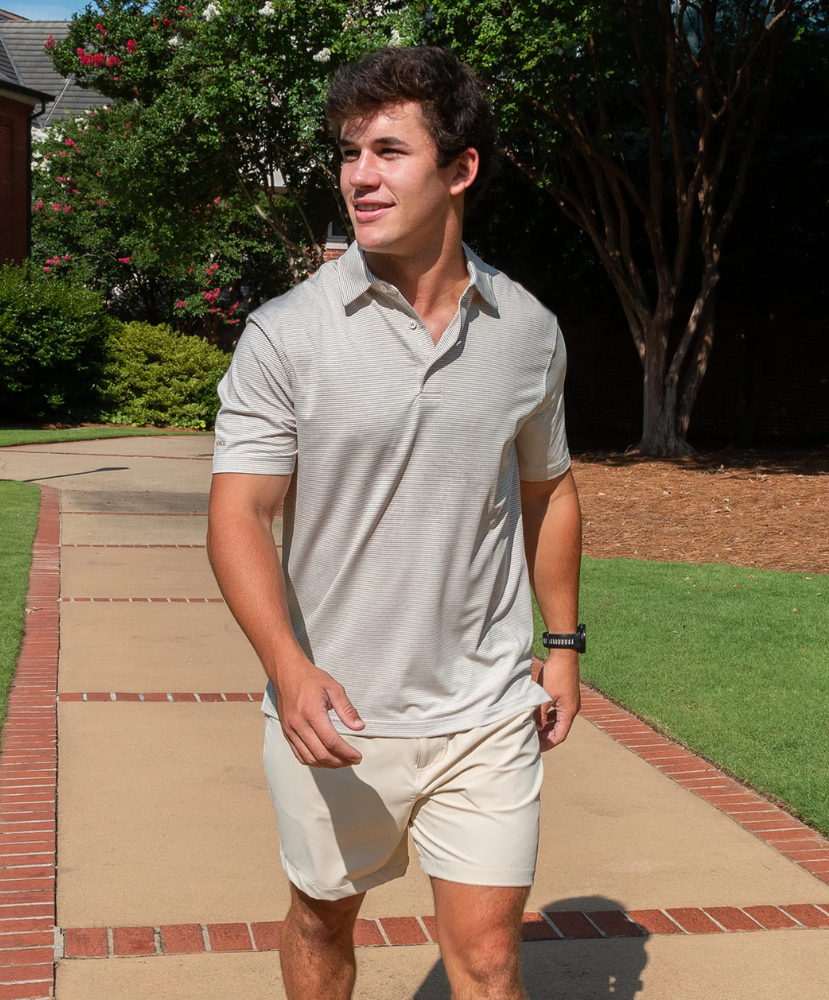 Experience unrivaled style in these course-ready performance polos. Crafted from jersey knit; they're the ultimate blend of comfort and sophistication. Polyester/spandex knit is moisture-wicking, breathable, and quick-drying to keep you comfortable in even the hottest situations. Features a 4-way stretch, so your movement is never limited.