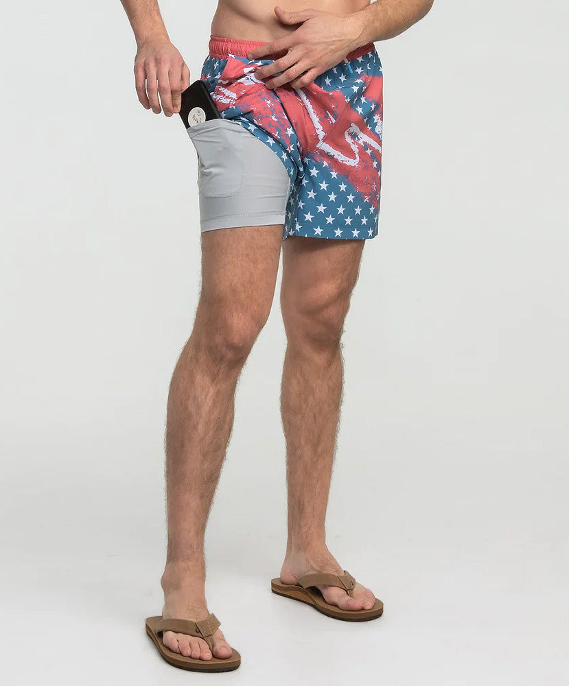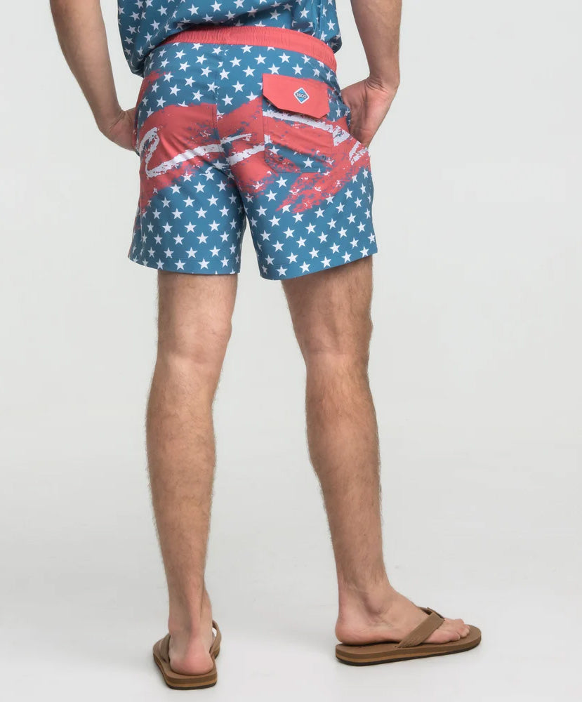 Show off your love of freedom with these Southern Shirt swim shorts. Designed for style and comfort, these shorts are perfect for pool parties or beach days.