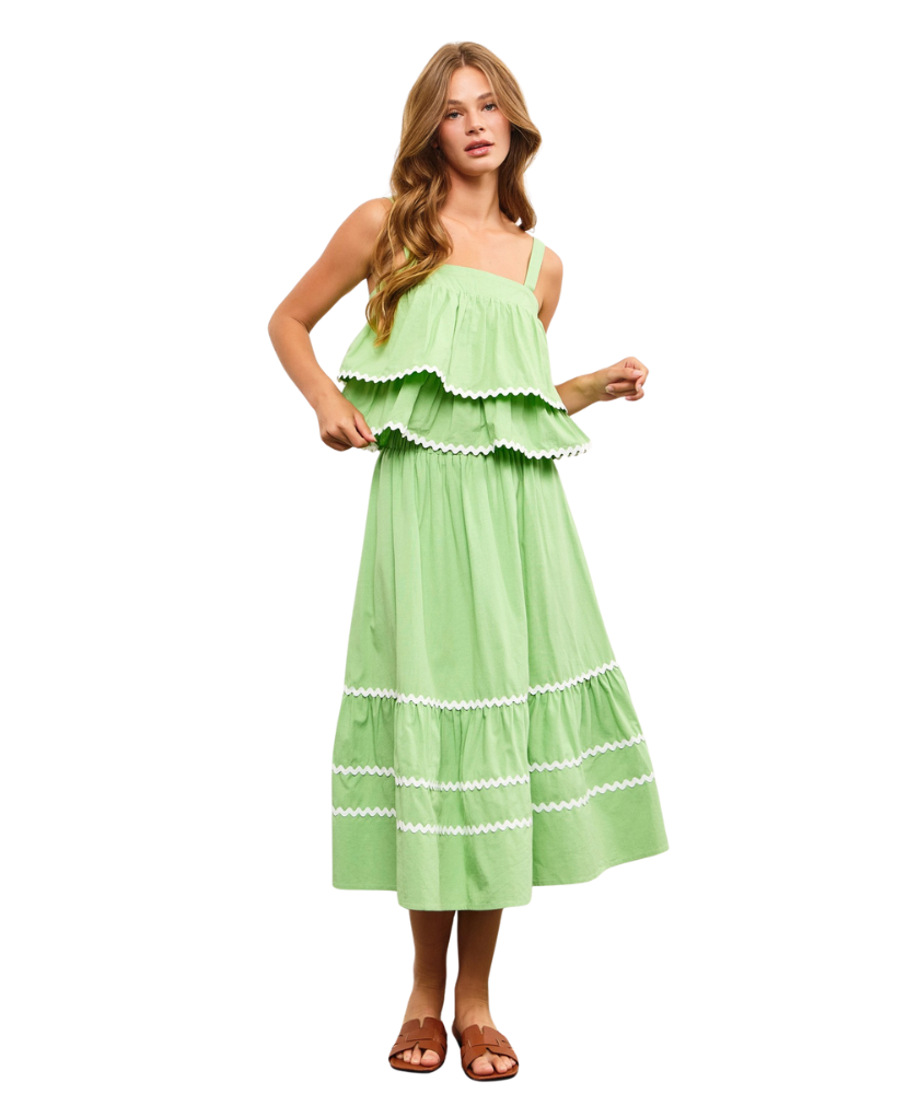 The Layla Scallop Tiered Sleeveless Top is an effortlessly feminine piece with flirty layers and delicate scallop trim. Breezy and lightweight, it’s perfect for sunny days, brunch dates, or a stroll by the shore.
