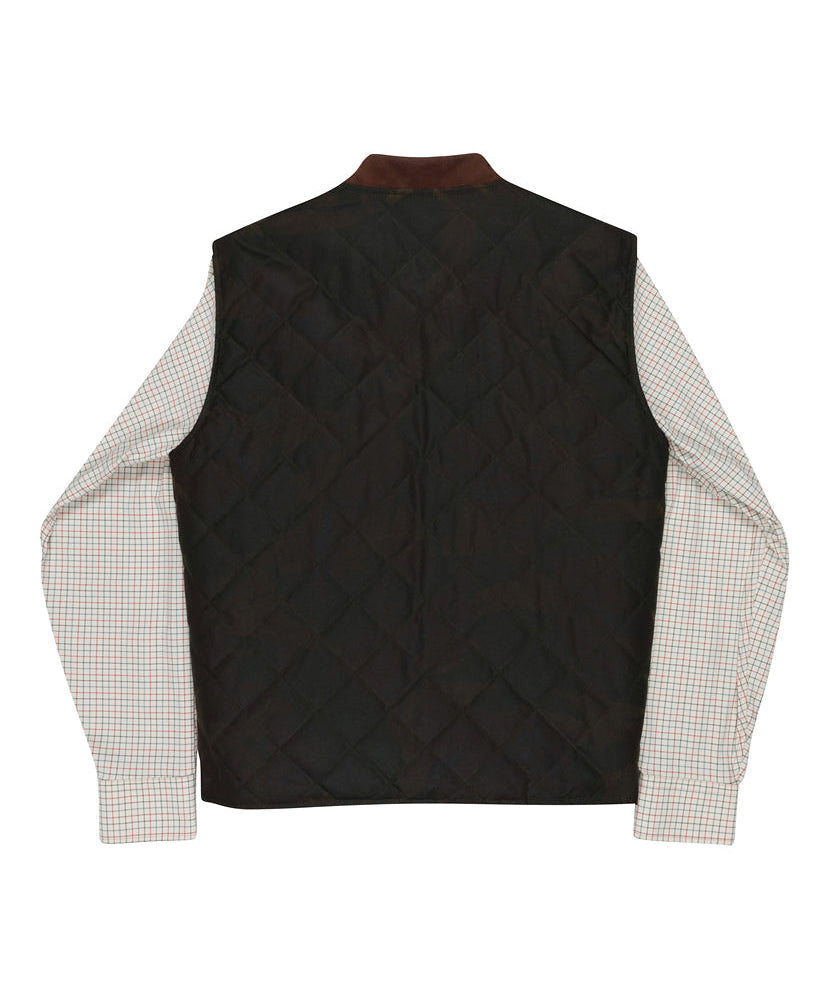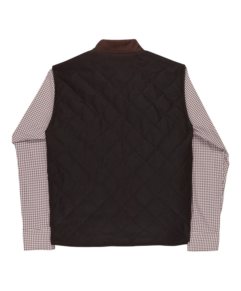 Water-repellent waxed cotton vest has a quilted exterior and a shearling lining for comfort and warmth. Perfect for fall evenings spent outdoors.