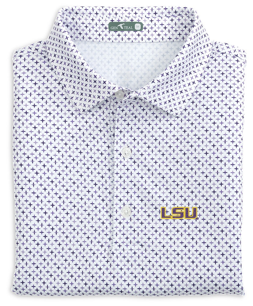 Football is finally here, so it's time to support LSU by sporting the Star Performance Polo. This classic polo in a distinctive print will complete a comfortable, pulled-together look for tailgate season.
