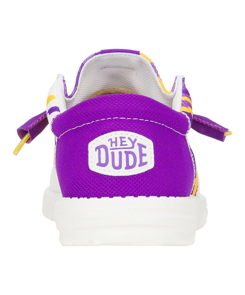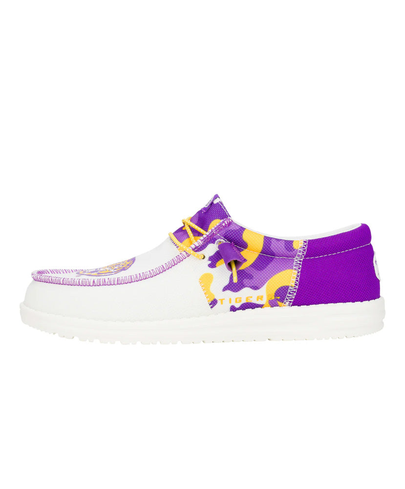Yes, we know you want to scream your love for LSU from the rooftops (or stadium tops), but with this Wally Tri you can swirl up your spirit in covert camo coloring. Ultralight outsole, flex-and-fold technology, removable insoles and easy-on lacing system. Geaux Tigers.