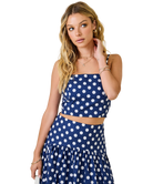 Flirty meets polished in the Violet Polka Dot Crop Top. With a sleek sleeveless cut, smocked back for comfort, and a playful navy-and-ivory print, this top is the perfect blend of fun and flattering. Wear it with the matching Violet Polka Dot Flared Maxi Skirt for a head-to-toe look or pair it with high-waisted denim for an easy fall weekend vibe.