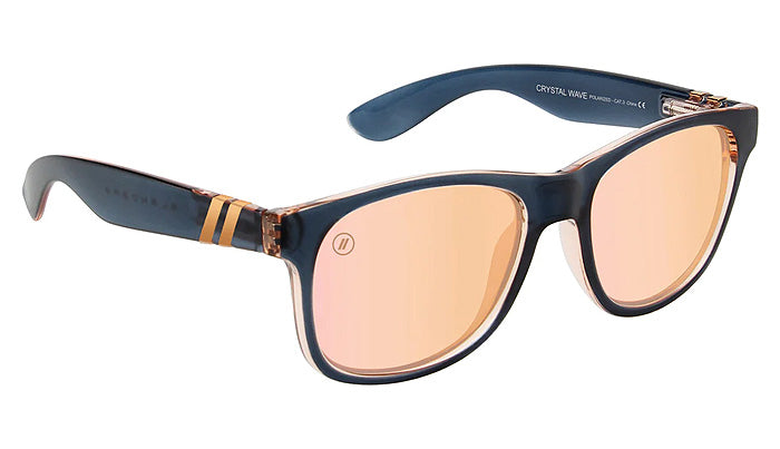 Crystal Wave.' The half-transparent frame is a matte-finished cool gray on the exterior, while the interior pops with a gloss peach treatment for a satisfying color contrast. The polarized champagne lenses play perfectly alongside the peach accents, bringing a slick, sublime cohesion to this style. Even better, the whole package is backed by the elevated engineering of this upscale collection—next-level spring hinges, all-metal temple stripes, and laser-etched lenses are all included.