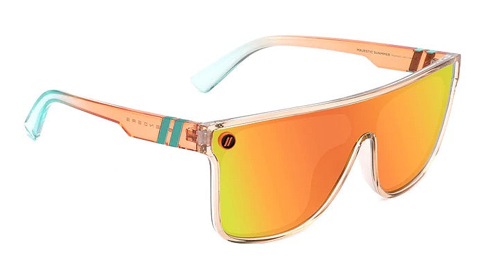 Endless waves, painted skies, fleeting romance. Summer’s always special—shouldn’t your shades be, too? 'Majestic Summer' glows with the promise of sun-kissed days—our "crystal nectarine" frame color blends so effortlessly with the polarized orange-red lens that the front appears all of a piece.