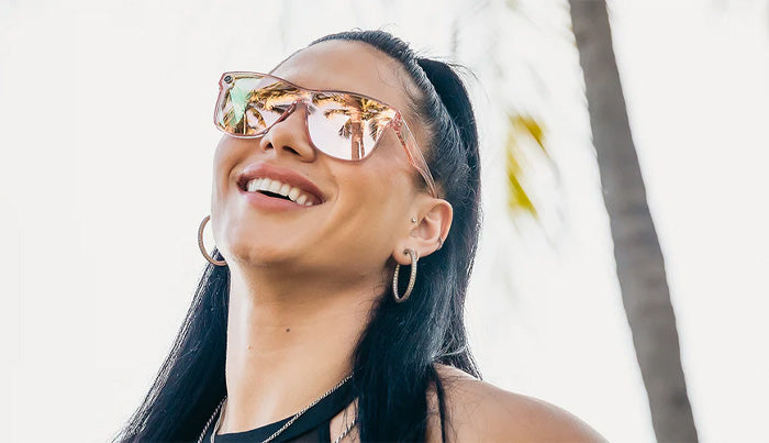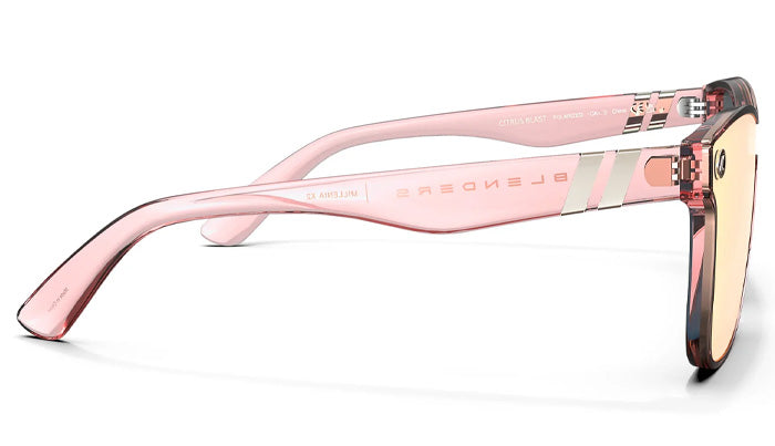 Pink packs a punch. Citrus Blast Millenia X2 takes one of the iconic single-lens designs, adds a champagne mirrored effect, and serves it up alongside a stunning crystal pink frame. It’s bright, it’s bold — and yeah, it’s polarized!