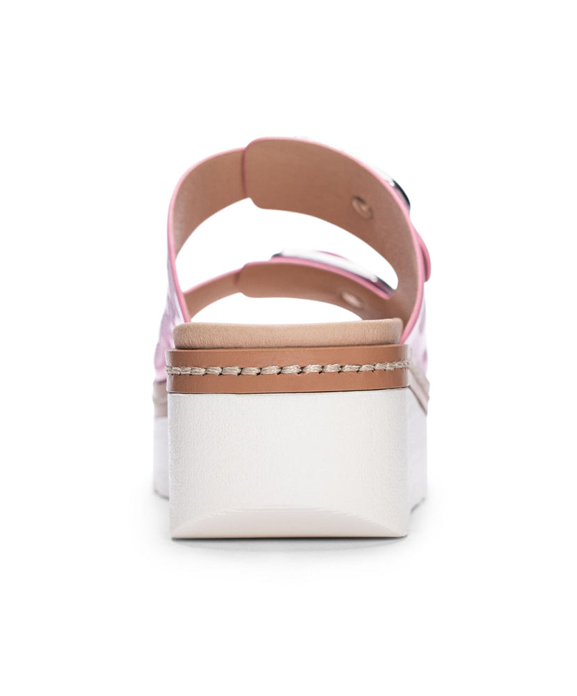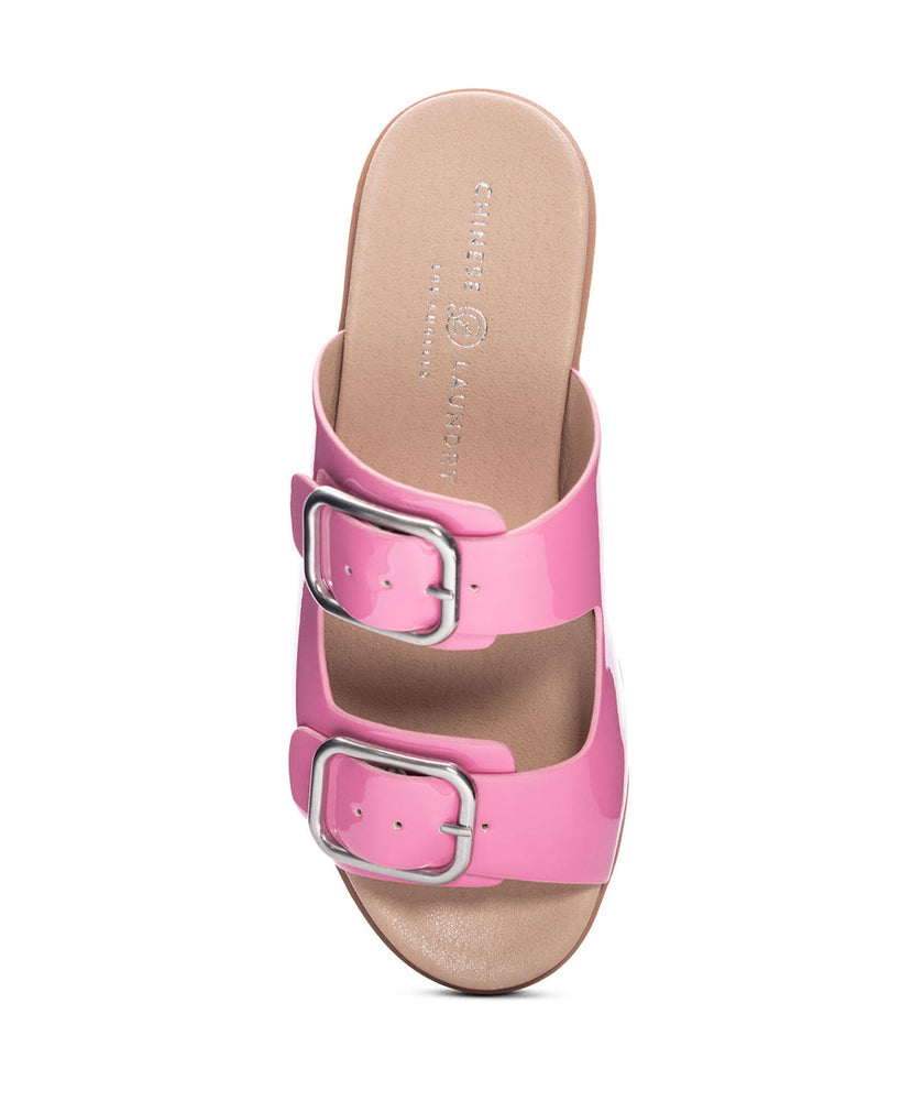 The perfect slide for both city sidewalks and sandy strolls. Contrasting platform sole and side-stitching, two eye-catching vamp straps with oversized buckles, and an ultra-comfortable footbed.