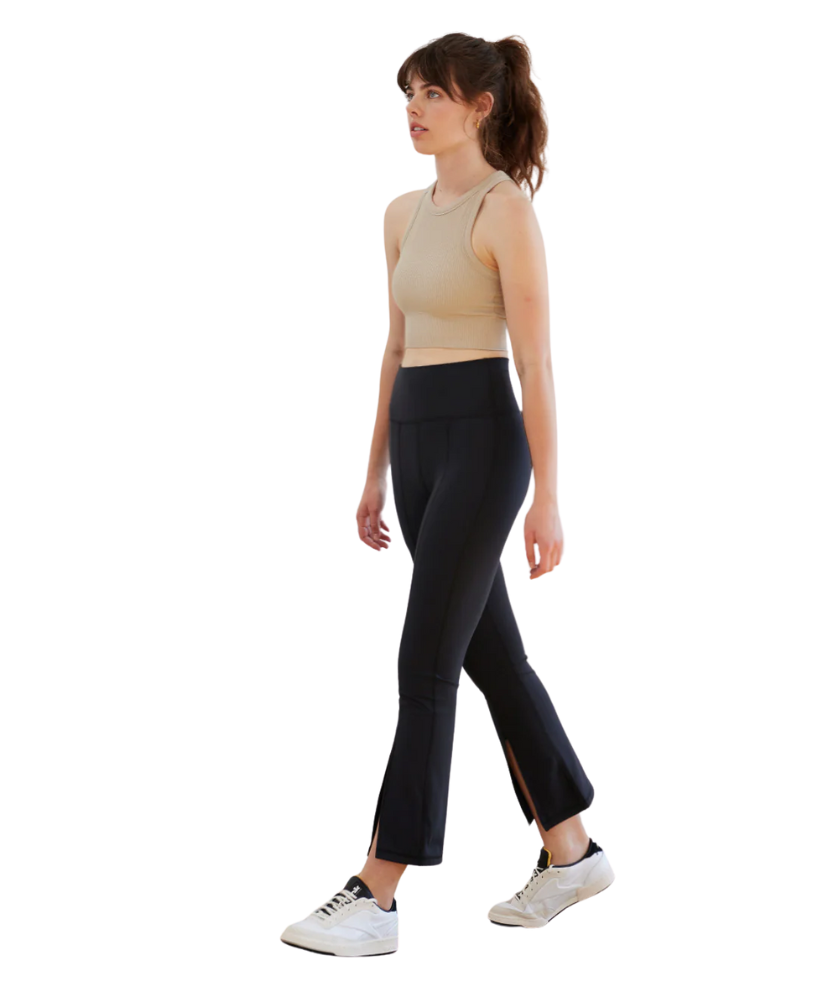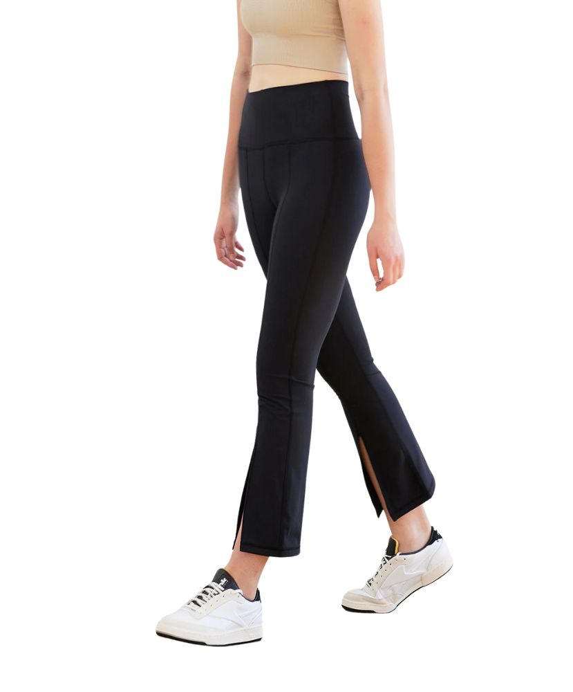 Meet your new go-to leggings—with a twist. The Julia Crop Flare Leggings take your everyday staple and kick it up a notch with a sleek front seam, flattering high-waist fit, and a cropped flare leg featuring a chic front slit. Designed to hug your curves through the knee before kicking out at the hem, these leggings strike the perfect balance between fashion and function.