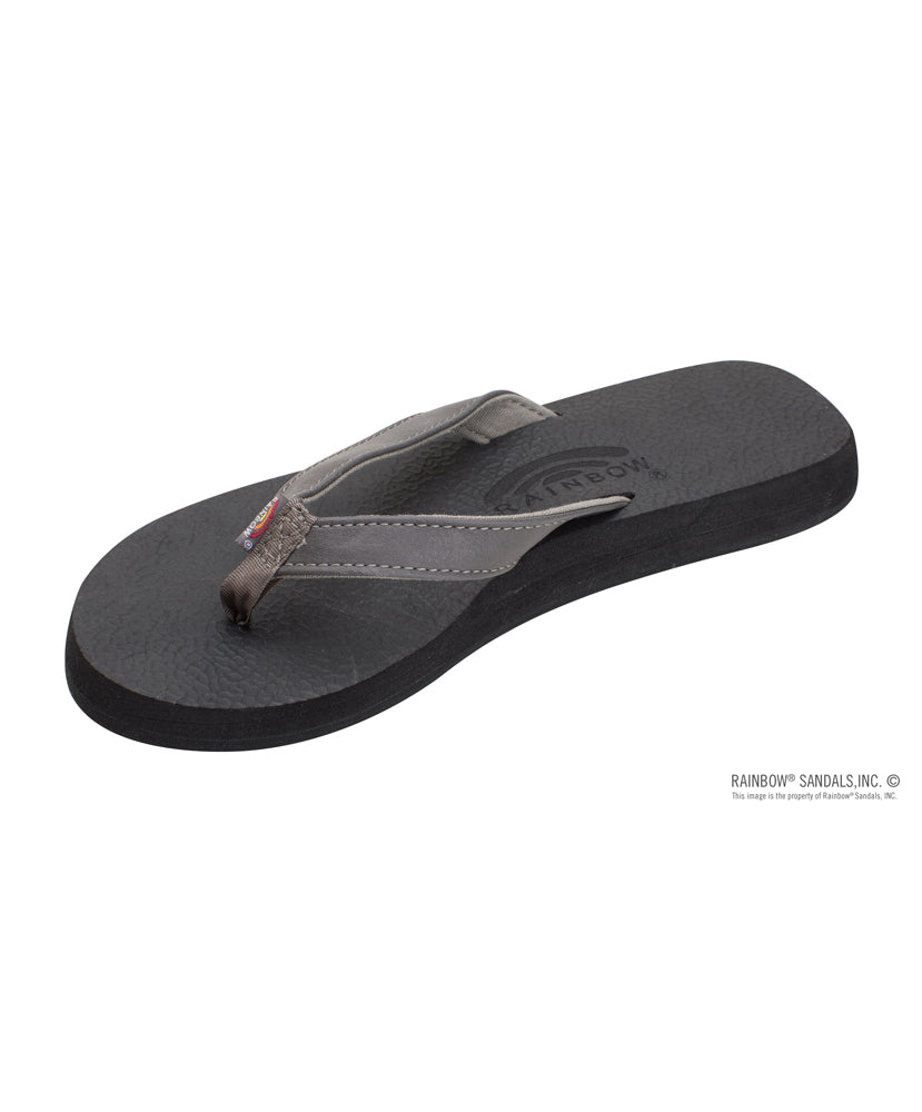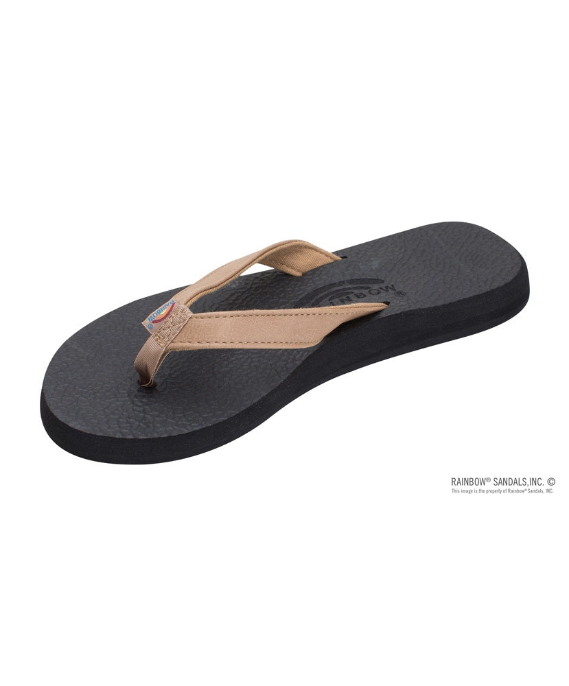 The Cottons is a fashionable soft rubber sandal made of a single layer midsole with a small wedge rising from the arch to the heel. The strap has faux leather outer lining and a canvas inner lining. The strap is sewn with bonded nylon thread and tapers from 1 inch on the sides to half inch at the box X stitched toe. It is finished with our Rainbow® Label at the toe piece.