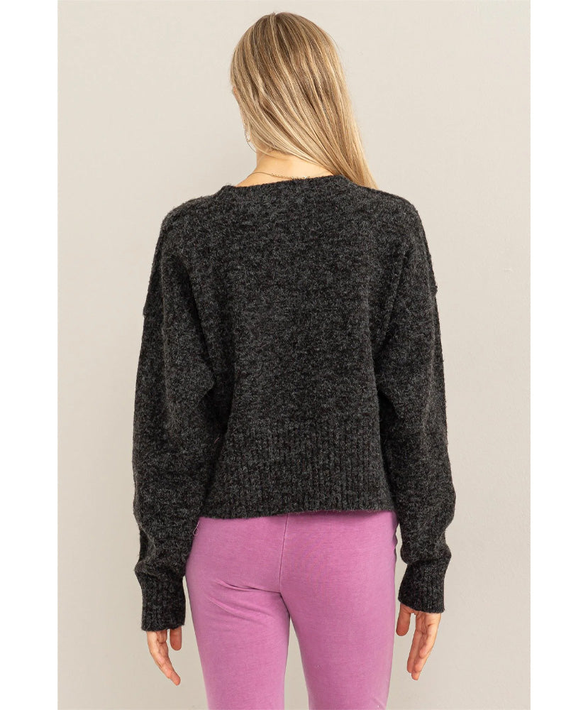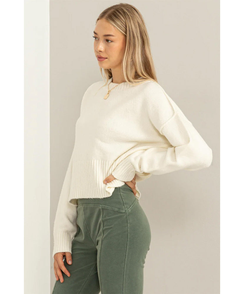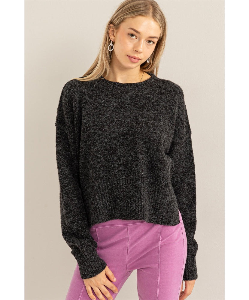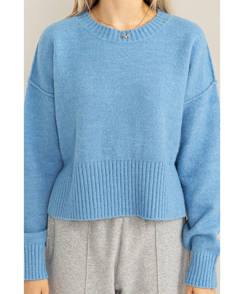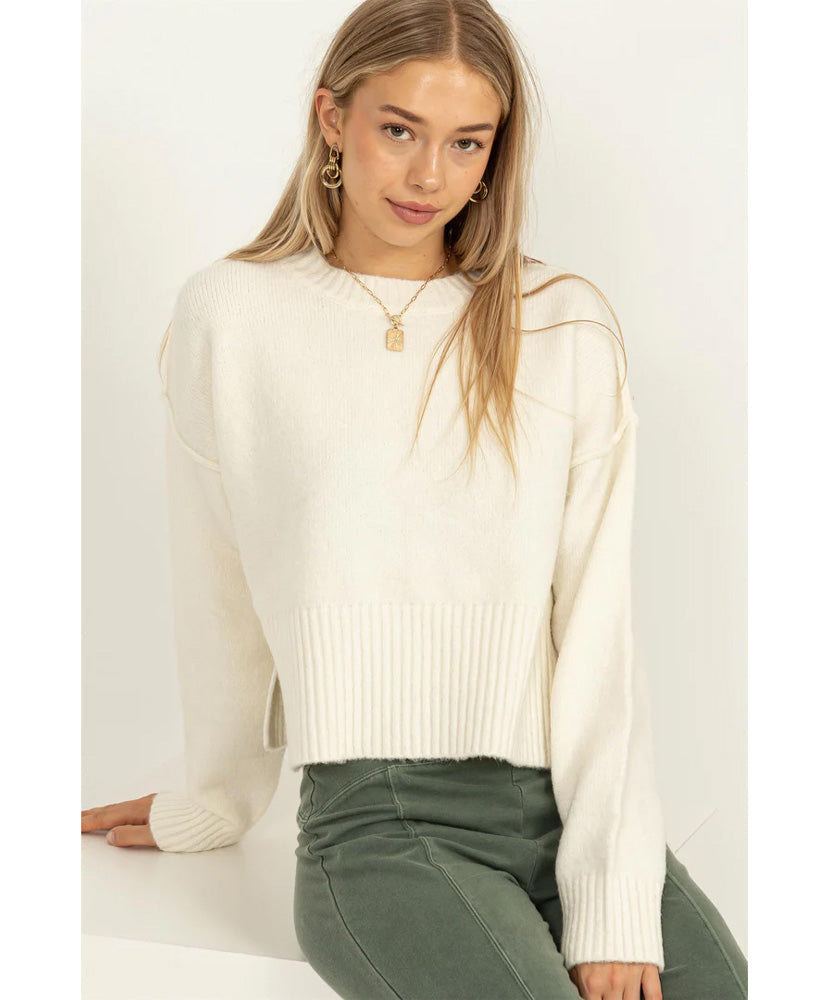 This sweater has been designed with with a comfy bodice that features side slits, round neckline, drop shoulders, long loose sleeves and fitted cuffs that make for THE perfect everyday fall look! The reverse seam detailing adds an effortless vibe.
