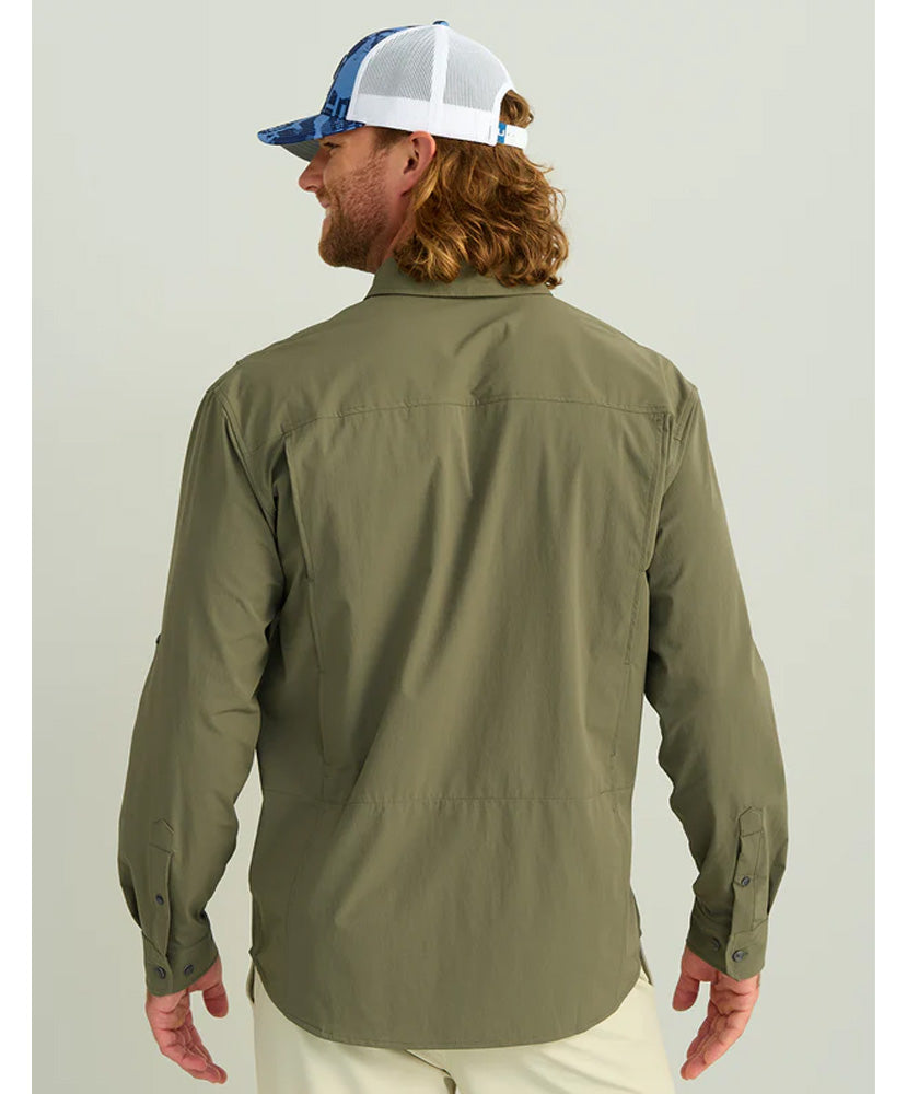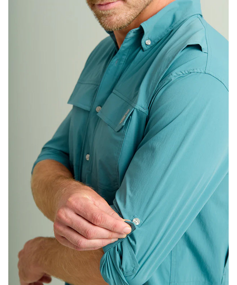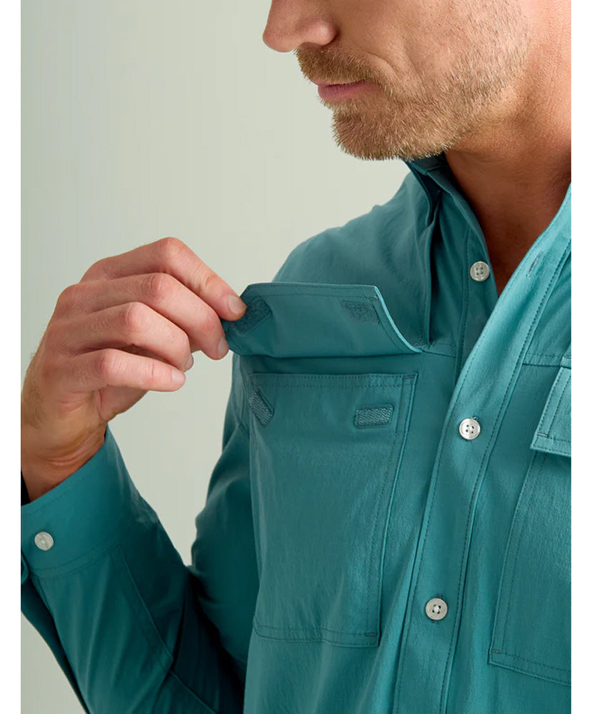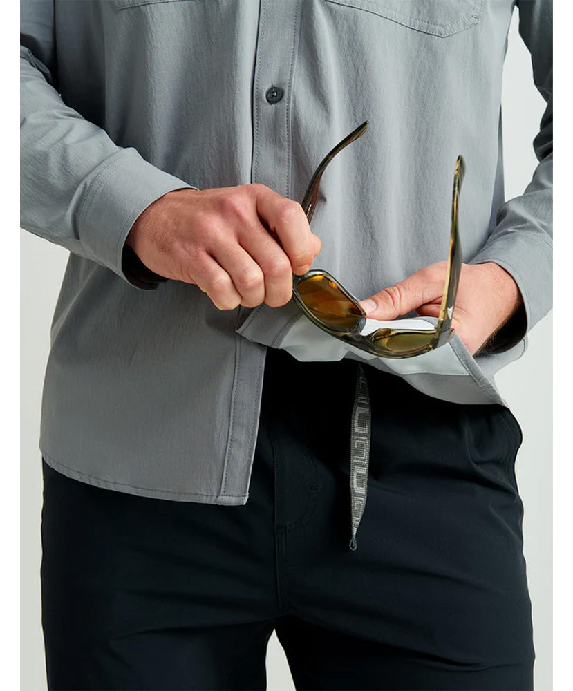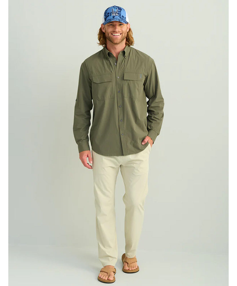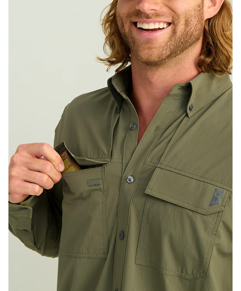 The Huk Creekbed Button-down shirt comes equipped with an eyewear wipe and hook-and-loop front pocket closures. However, the most notable feature of this shirt is the vented paneling on both the front and back, which provides superior airflow for ultimate comfort.