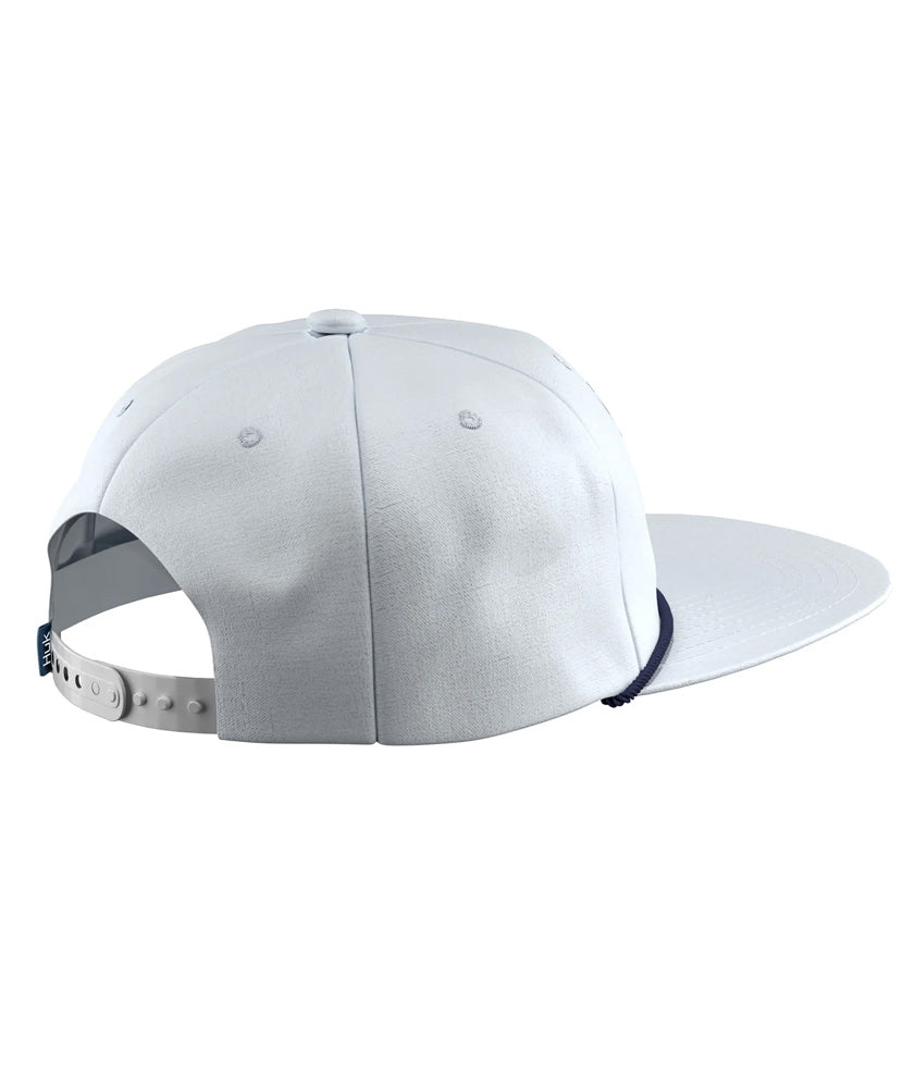 This structured mid-profile cap displays a Huk logo patch and rope accenting, a dark gray under visor to reduce glare, and a sweat-wicking lining for comfort.