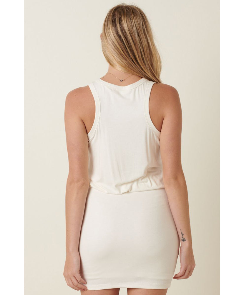 Knit fabric, scoop U neck. Sleeveless and fully lined.