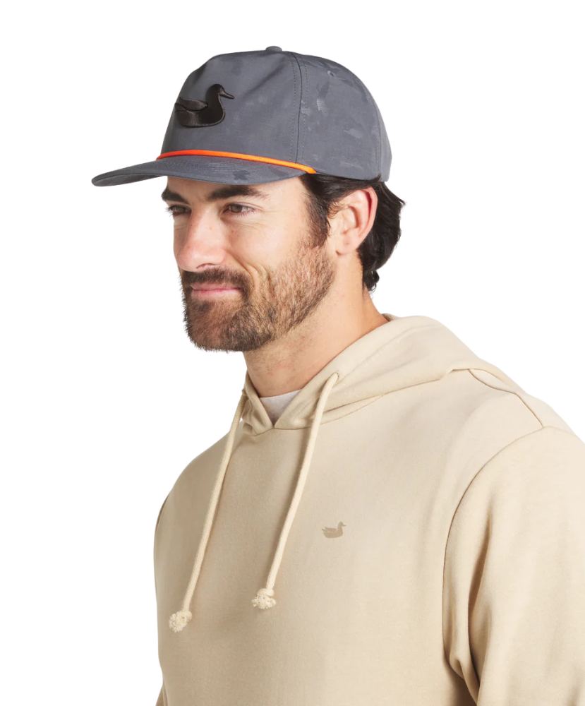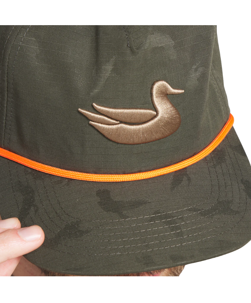 Blend into the blind without sacrificing style in the Sabine Rope Hat - Duck Camo. Built from durable ripstop polyester, this cap features an all-over duck camo print and a bold rope accent across the brim for a touch of retro flair. The oversized duck logo embroidery keeps it true to your waterfowl roots, while the adjustable snapback ensures the perfect fit for all-day wear. Whether you’re scanning the skies or just enjoying a crisp fall day, this hat’s got you covered.
