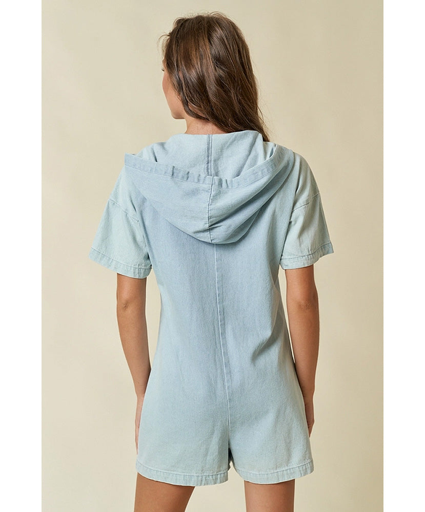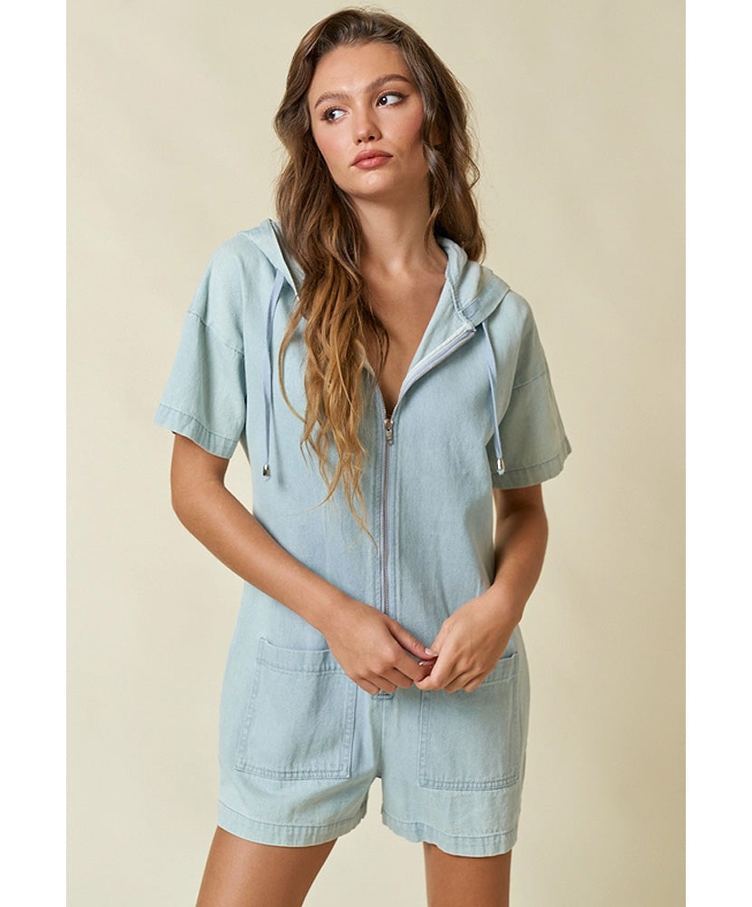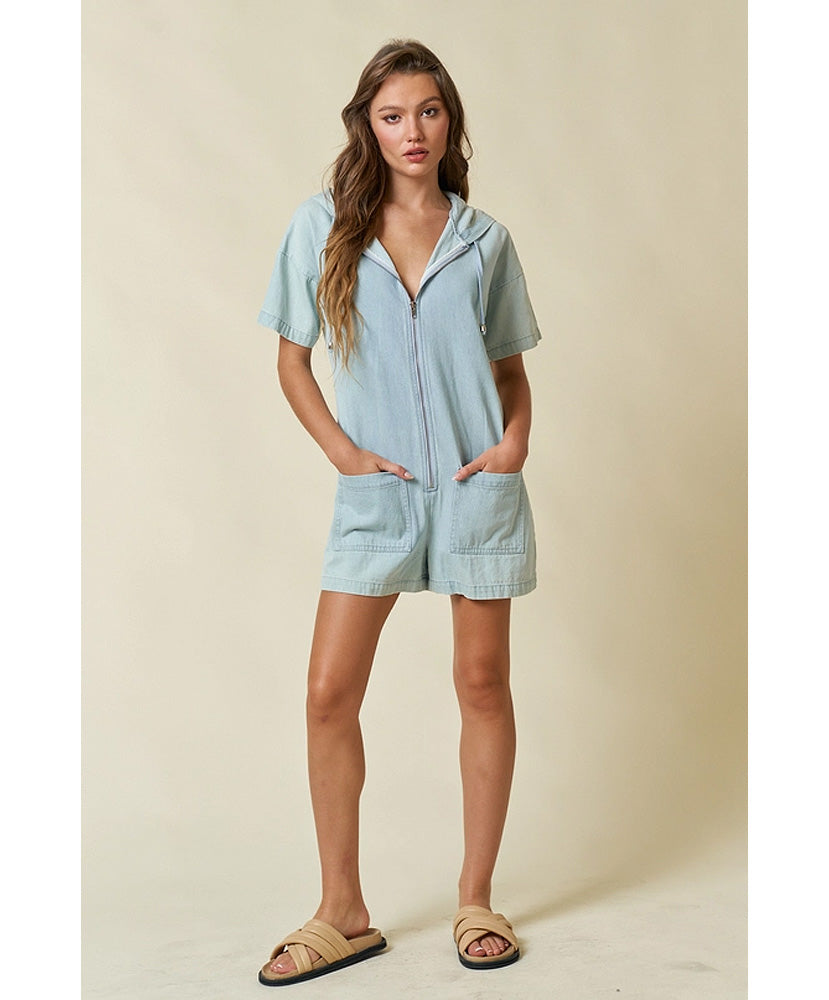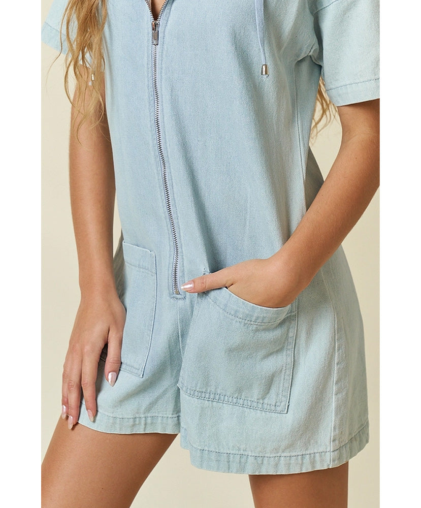 Dallas Denim Zip Up Pocket Hoodie Romper