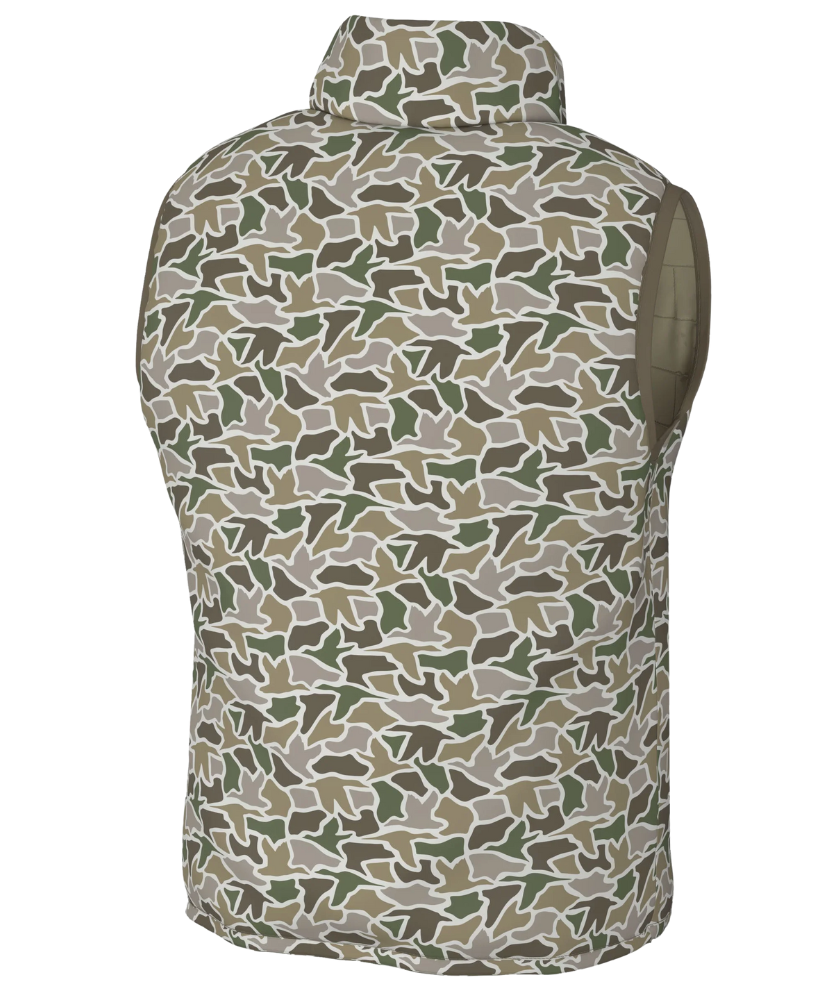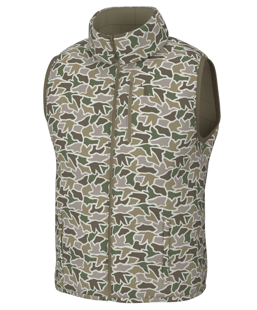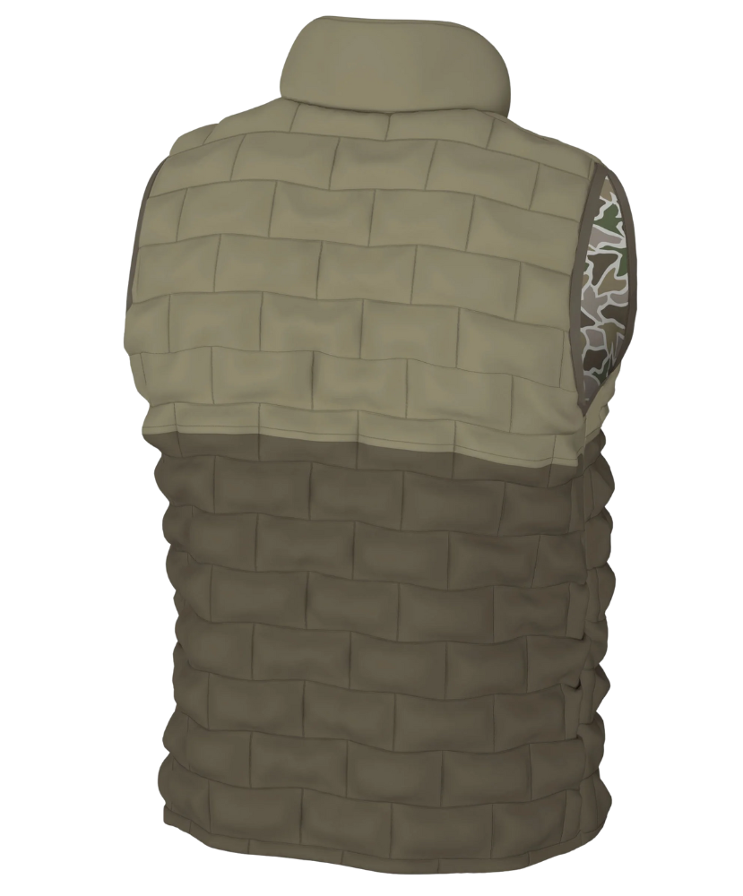 One vest, two moods. Whether you’re feeling like a classic gentleman or a camo-clad legend, this Duck Down Reversible Vest’s got your back (literally, both sides). With a brick-quilted two-tone on one side and our signature camo on the flip, it’s basically two jackets for the price of one. Both sides feature a zippered chest pocket for stashing essentials and the iconic dog & moon logo that says, “Yeah, I’m Local.” Perfect for layering, hunting, tailgating, or just pretending you chopped the firewood.