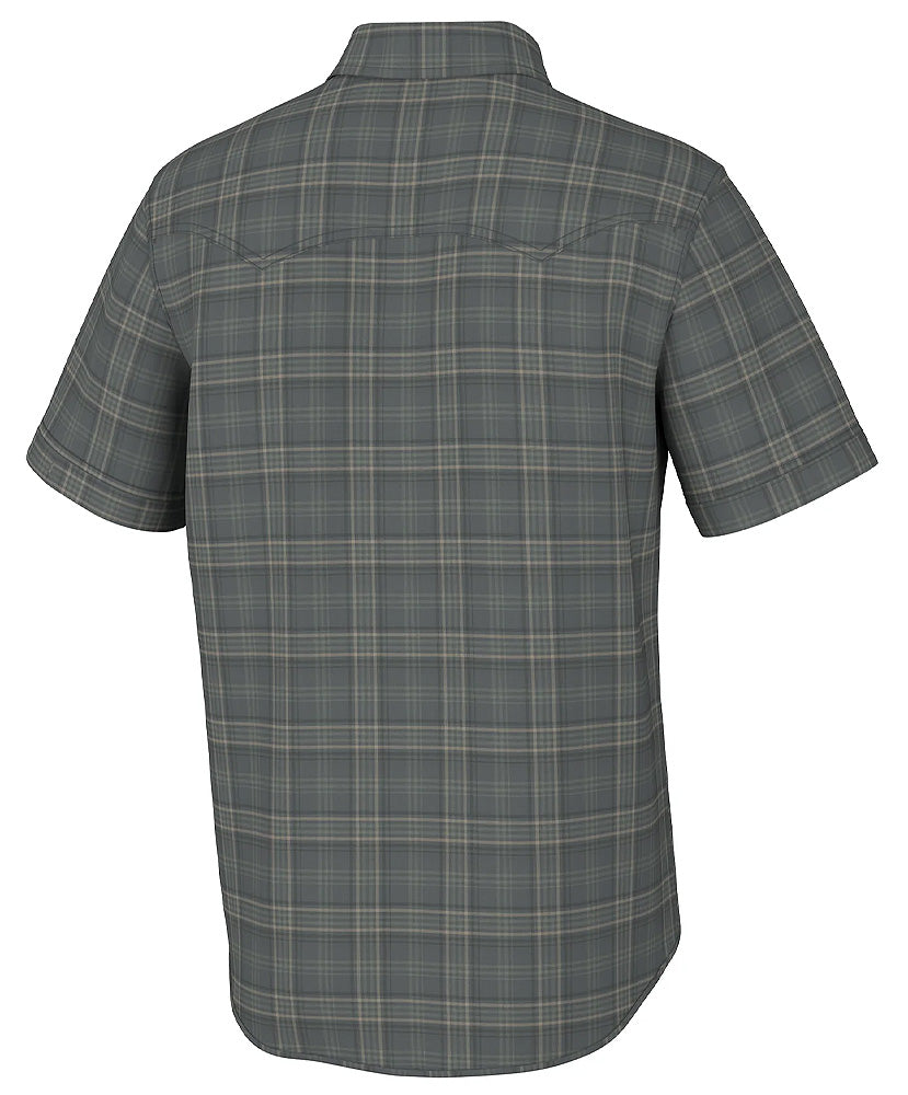 Modern performance stretch fabric in a slightly western style that won’t rub or chafe your chest and underarm zones when casting from sun-up to beer-:30. Short-sleeved for warm-weather coolness. Tucked in with a belt, consider them proper dinner attire as well. 52% nylon, 48% polyester with double vertical pockets that hold line nippers, a phone, tippet or a can of ZYN.