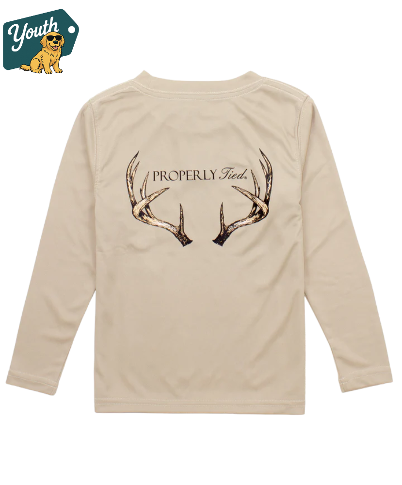 Properly Tied - Youth Performance LS Tee - Vintage Antler