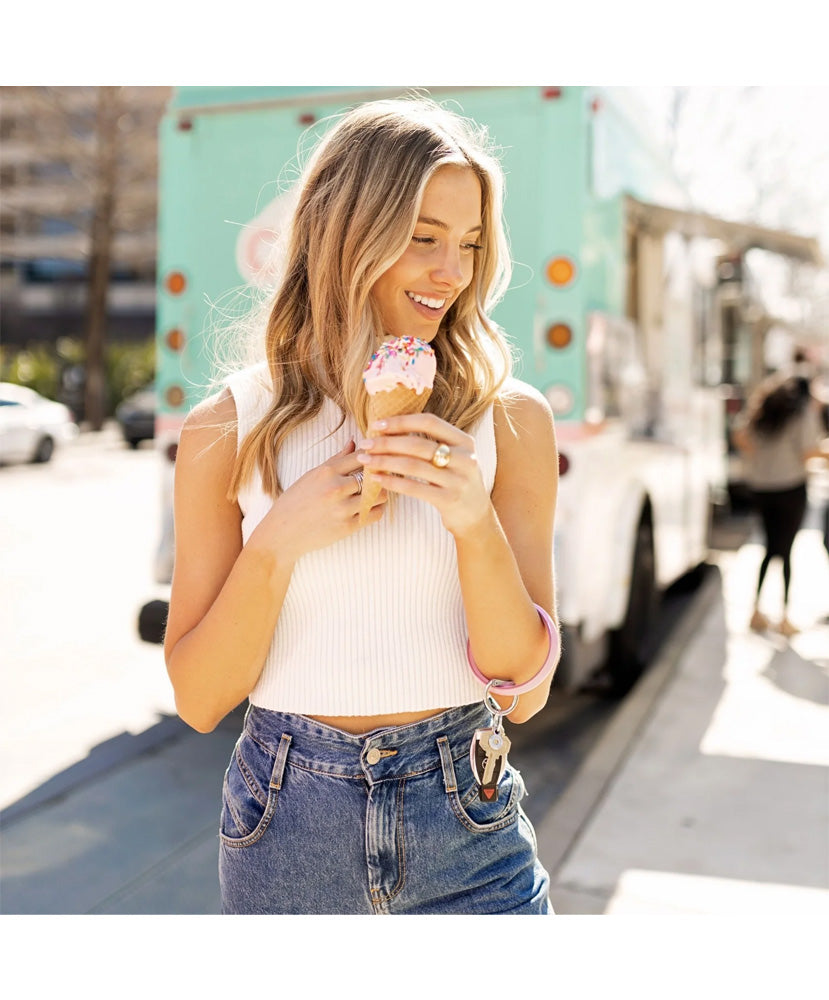 The Original Big O Key Ring is a one-size-fits-all bracelet key ring that can be worn on your forearm or above your elbow for hands-free simplicity. The patented, signature locking clasp clicks open and closed to keep your keys, phone and wallet in one central, secure location.