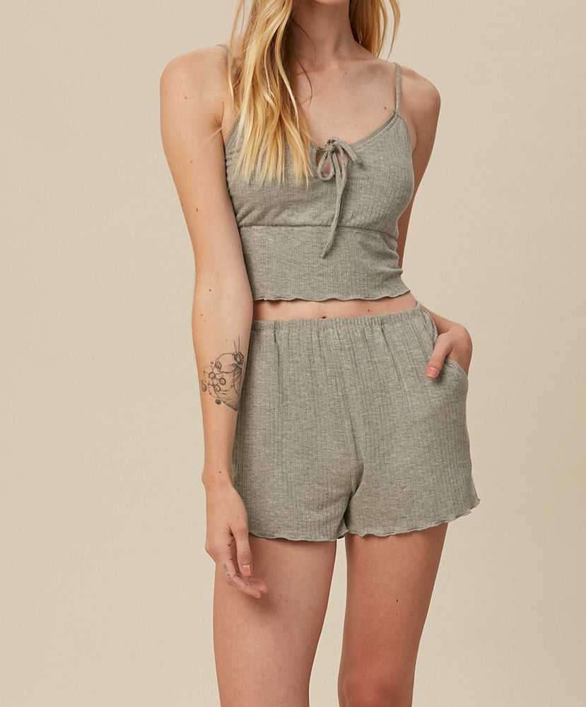 Rib-knit PJ set. Super comfy, stretchy fabric. Pockets on shorts.