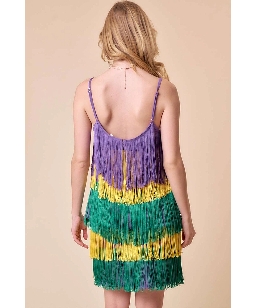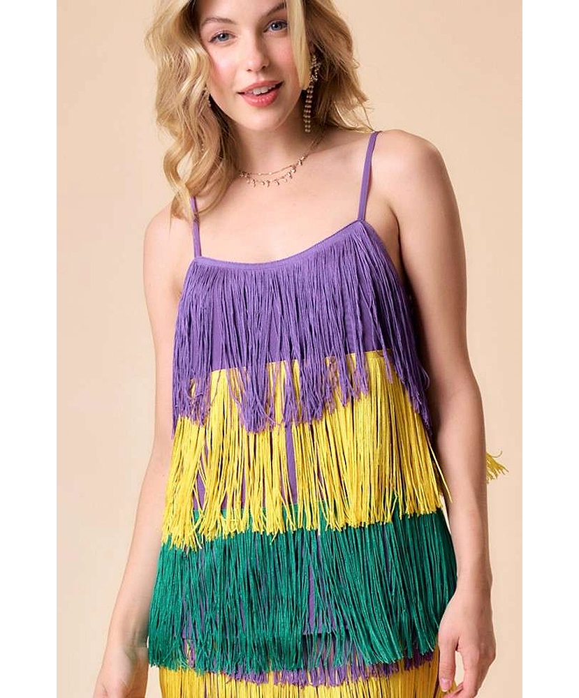 Mardi Gras Fringe Color Block Top