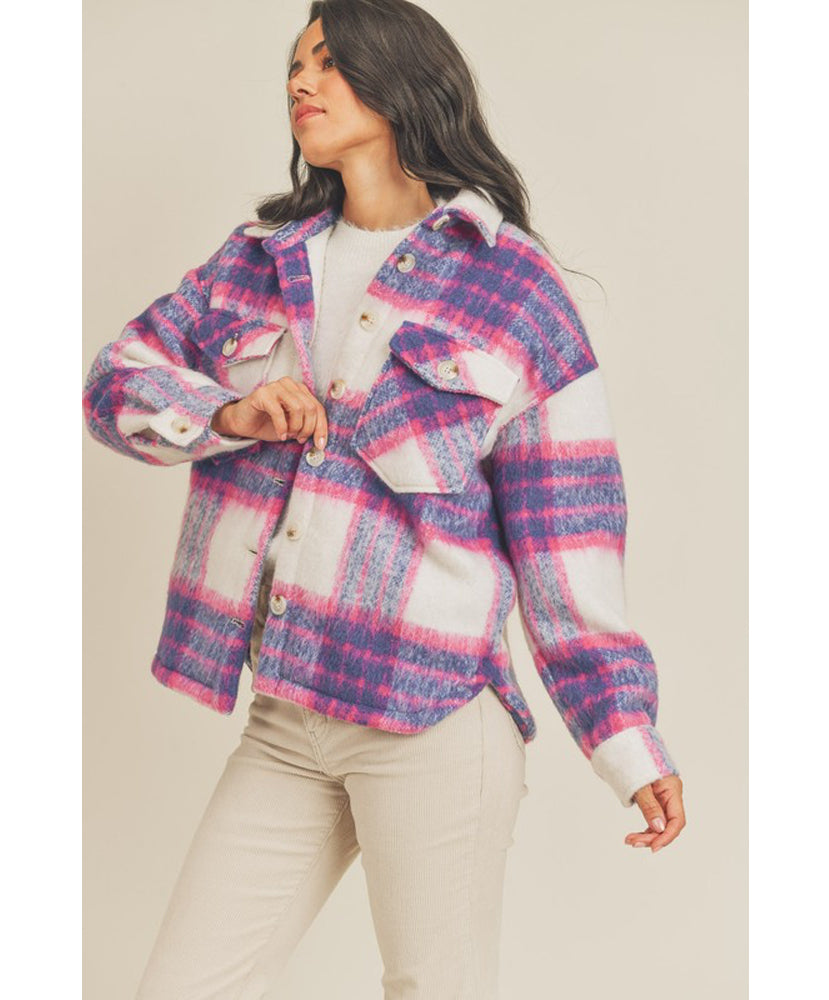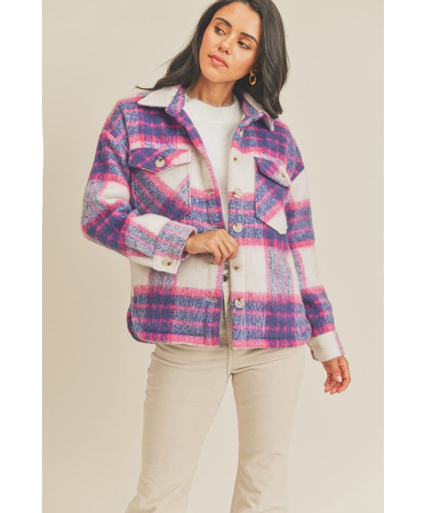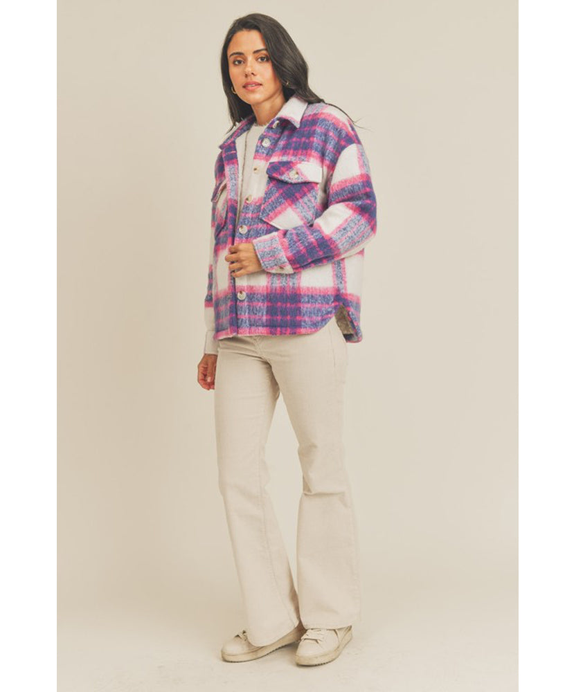 Brused plaid jacket. Quilted lining. Flap pockets with buttons.