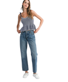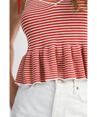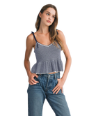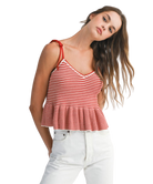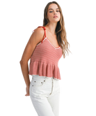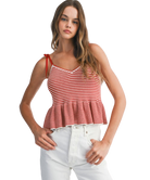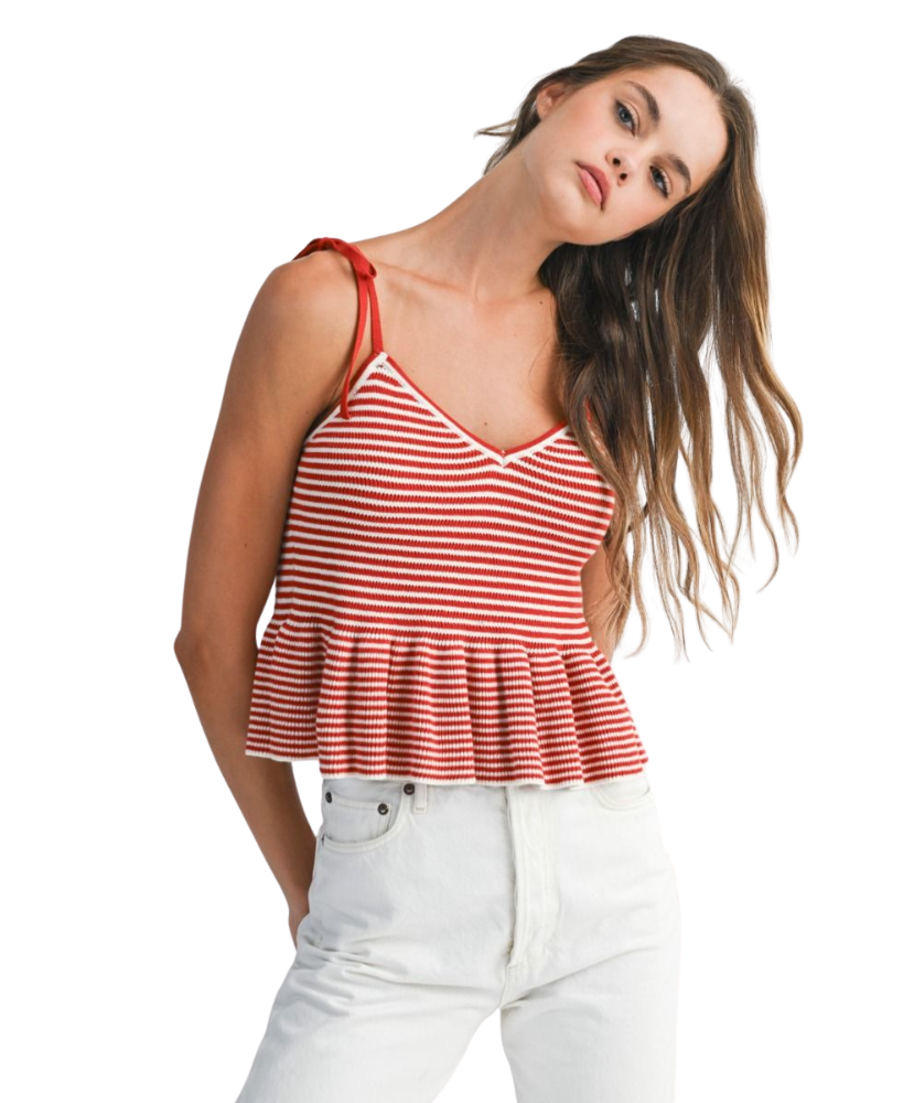 Classic stripes meet playful charm in the Harper Top. Designed with a flattering V-neckline, soft sweater knit, and a flouncy peplum hem, this top is tied together with adjustable shoulder straps for a custom fit. Whether you're brunch-bound or beach-walking, Harper adds a fresh pop of nautical flair to your look.