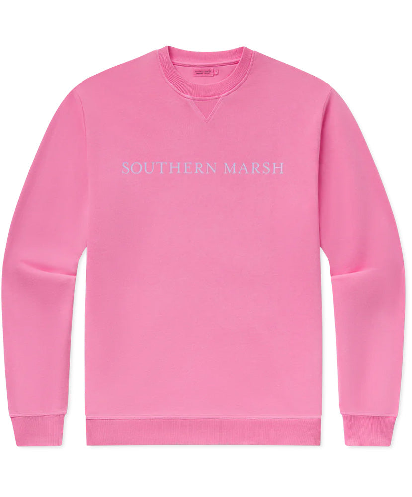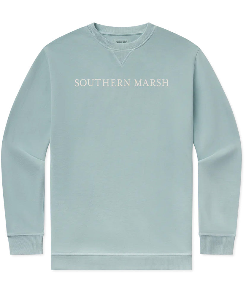 Seawash colors are now available in the comfiest sweatshirt you’ll ever throw on. Made with 100% cotton, this terry crewneck sweatshirt is soft and will keep you comfortable and warm. It is finished with custom Southern Marsh lettering and an embroidered duck on the back collar.