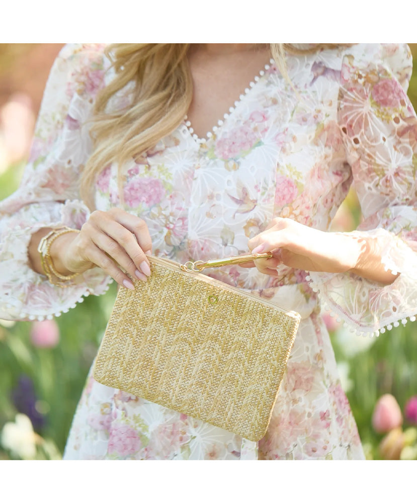Perfect for quick errands, yet cute enough to take along to parties and luncheons, the Raffia Big O Bracelet Bag! This do-it-all, lightweight wristlet has a chic, bamboo bangle-zip closure and is sized to hold all your daily essentials (like a cell phone, wallet, and sunglasses) completely hands-free.