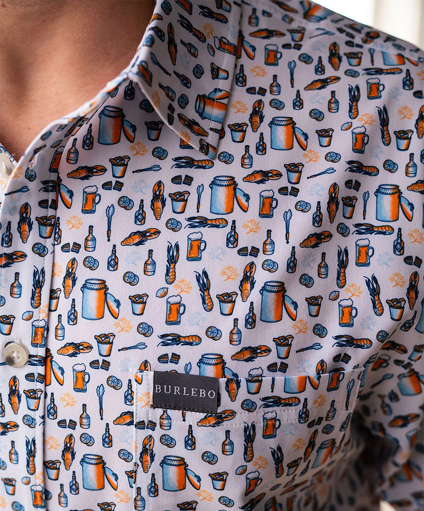 Suck some heads! This is the perfect button up now that crawfish season has started.