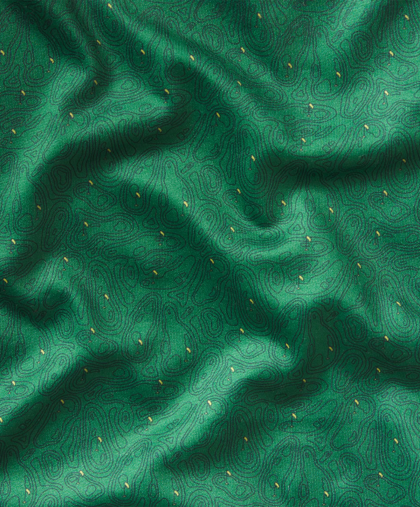 Featuring a golf green topo map micro print the Flyline Performance Polo - Greens in Regulation adds a unique touch to your outdoor style. Made with stretchy, moisture-wicking fabric, it keeps you cool and comfortable during active days. Perfect for golfing or any outdoor activity, this polo blends performance and style for all-day wear.