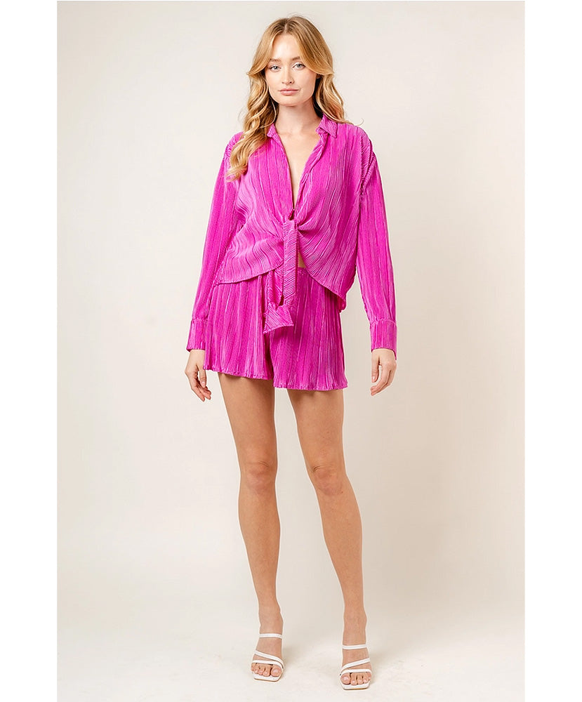 Pairs with Zoey Plisse Crinkle Tie Blouse