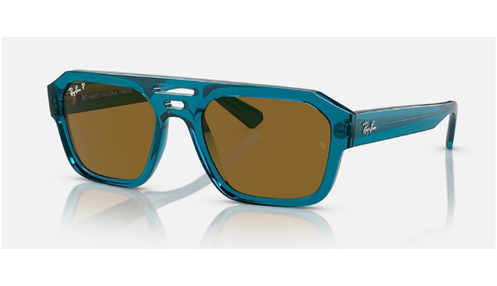 Ray-Ban RB4397 Corrigan Bio-Based sunglasses are a must-have for your summer collection. The lightweight acetate frame with transparent yellow temples is perfect for everyday wear. These sunglasses feature dark blue lenses, so you'll look and feel as good as you'll look.